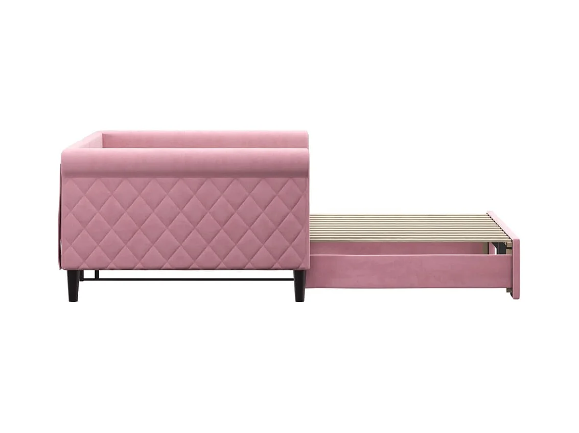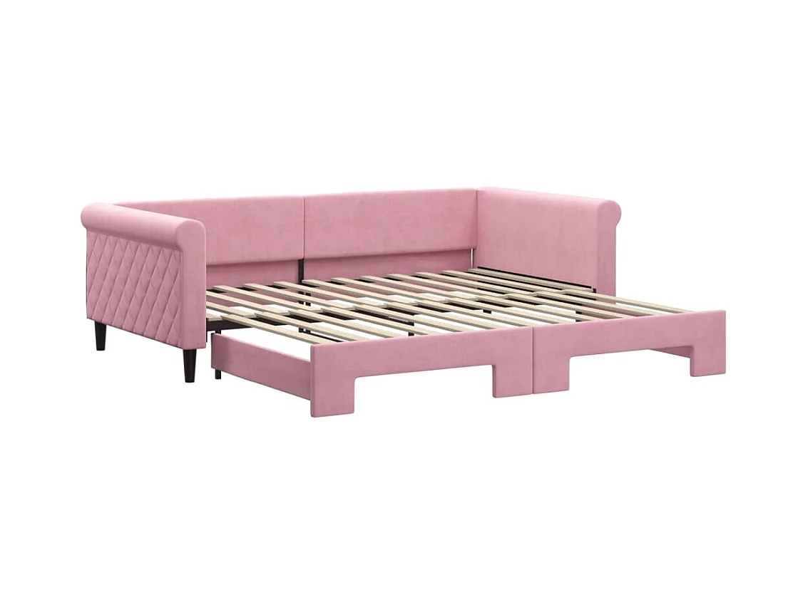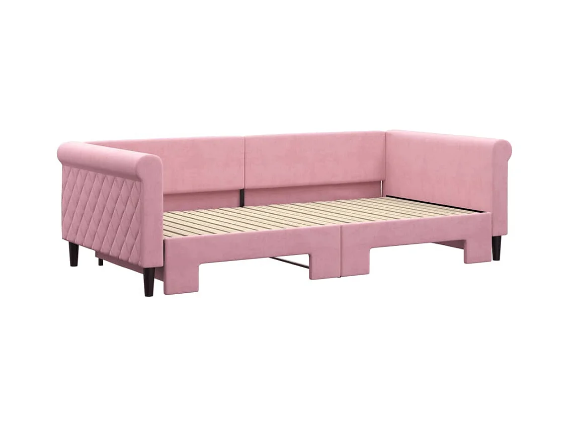 Lit de jour avec lit gigogne et matelas rose 100x200 cm velours