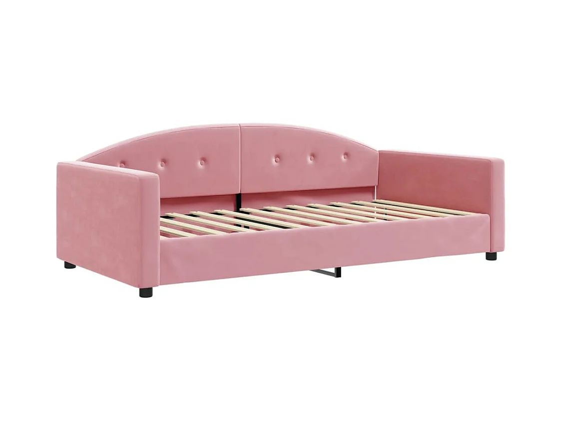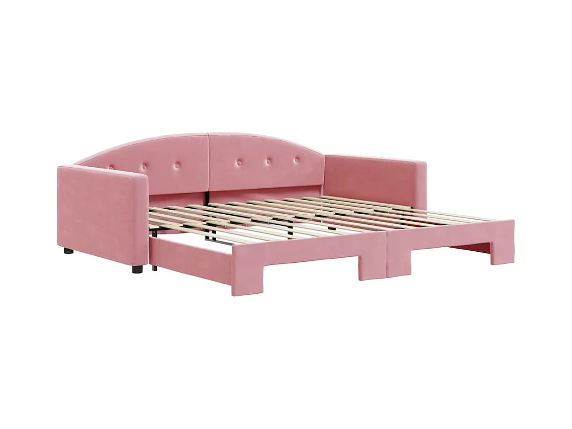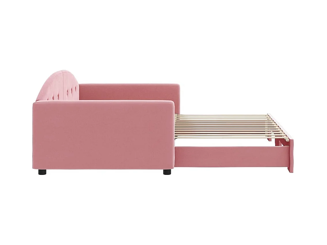 Lit de jour avec lit gigogne et matelas rose 100x200 cm velours