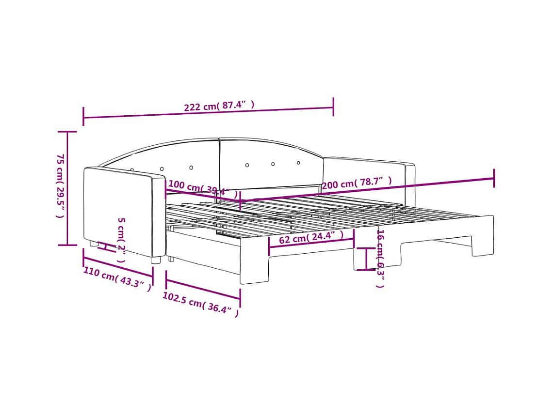 Lit de jour avec lit gigogne rose 100x200 cm velours