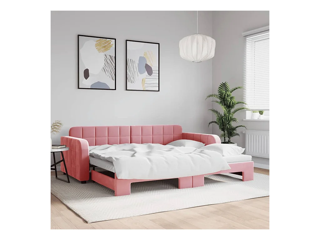 Lit de jour avec lit gigogne rose 90x200 cm velours