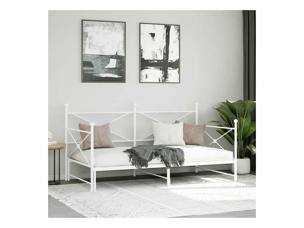 Lit de jour avec lit gigogne sans matelas blanc 90x200 cm acier