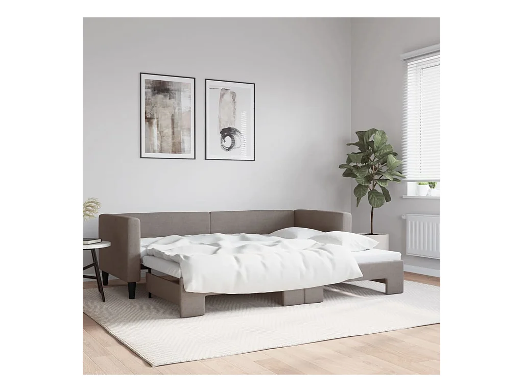 Lit de jour avec lit gigogne taupe 80x200 cm tissu
