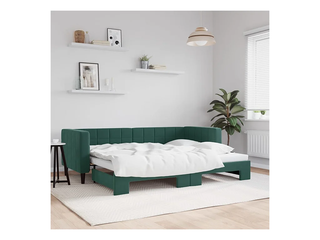 Lit de jour avec gigogne et tiroirs vert foncé 80x200cm velours