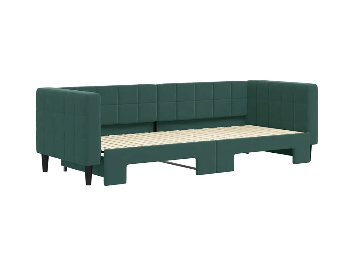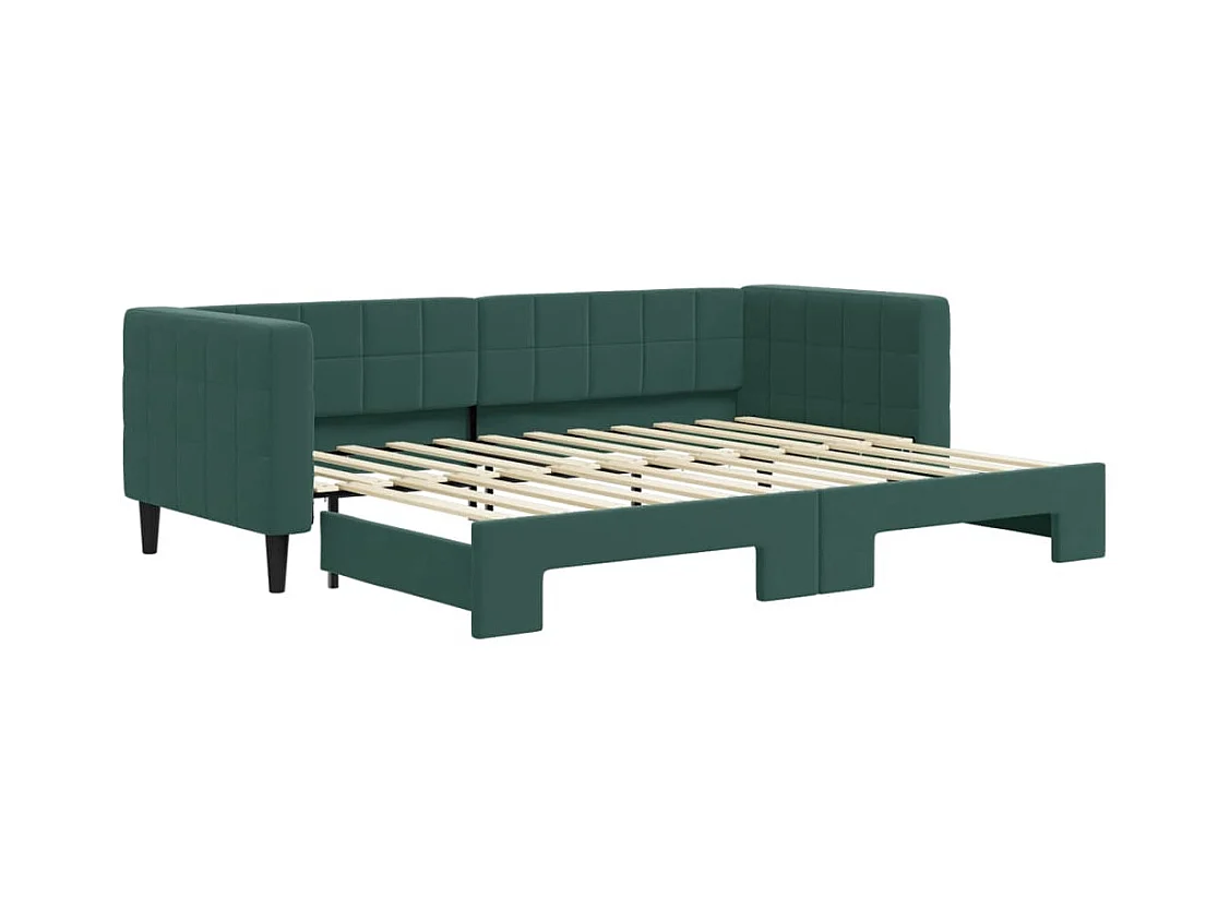 Lit de jour avec gigogne et matelas vert foncé 80x200cm velours