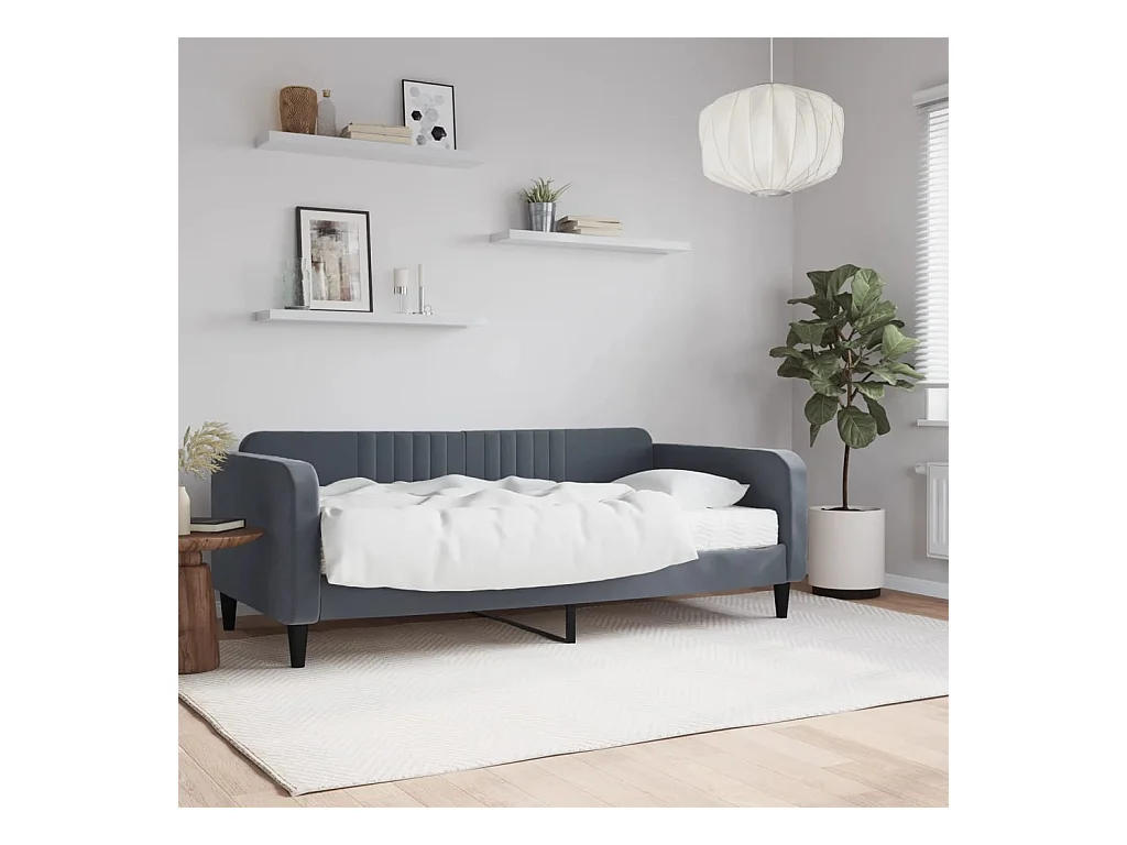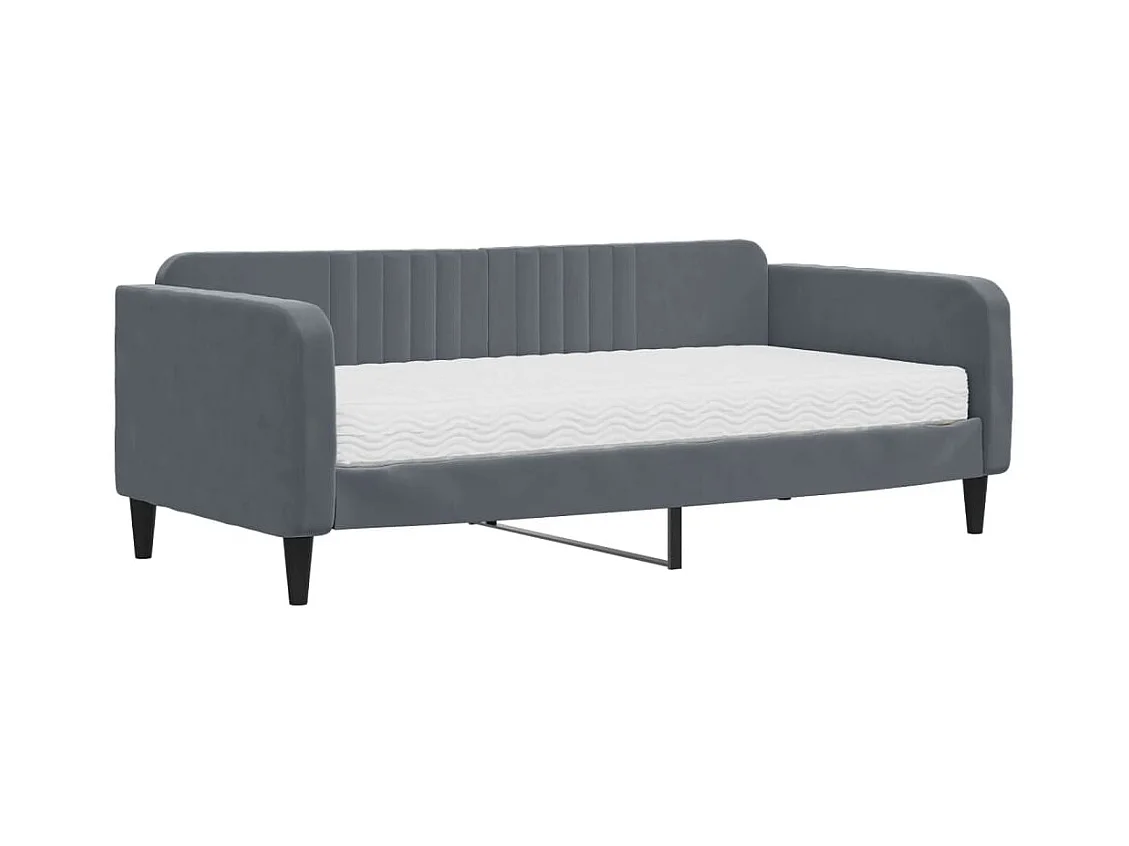 Lit de jour avec matelas gris foncé 90x190 cm velours