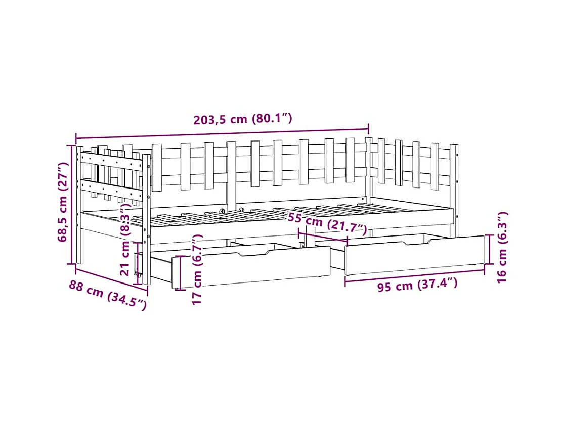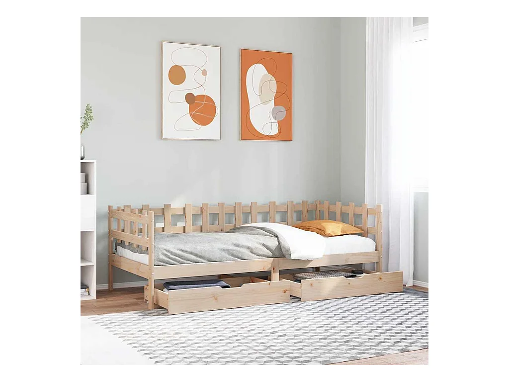 Lit de jour avec tiroirs sans matelas 90x200 cm bois massif