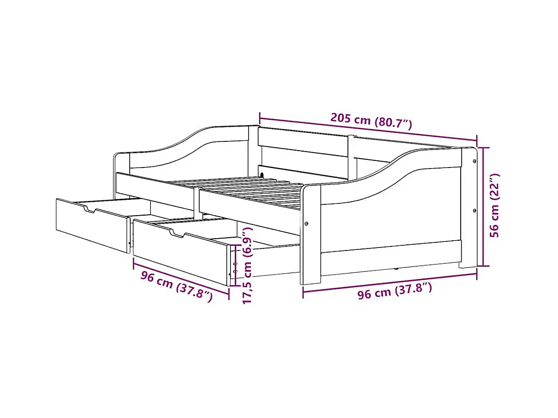 Lit de jour et 2 tiroirs sans matelas IRUN blanc rose 90x200 cm