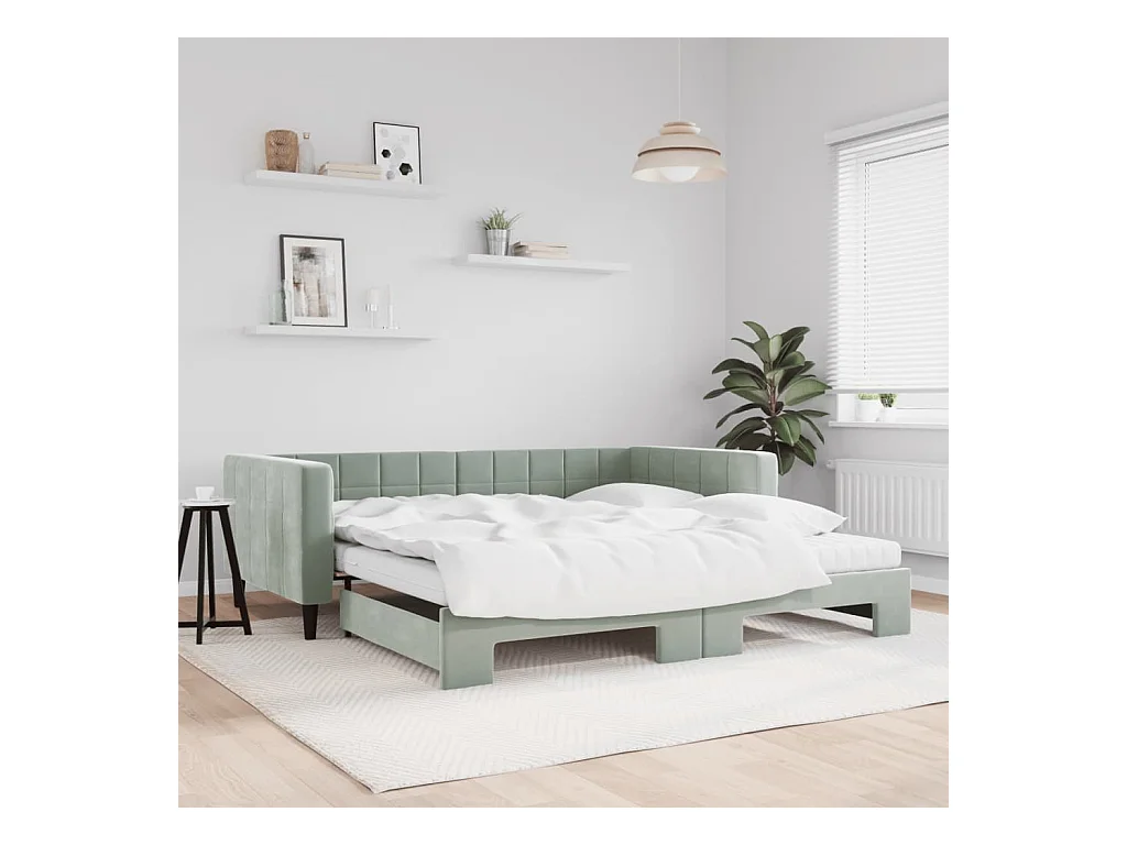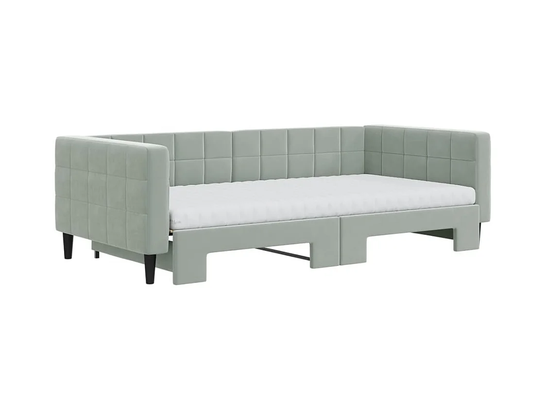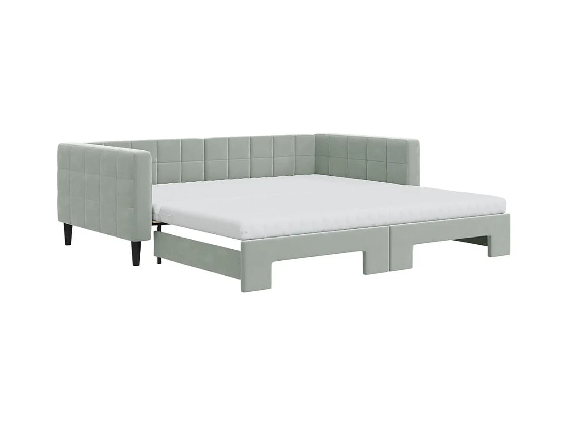 Slaapbank onderschuifbed matrassen 100x200cm fluweel lichtgrijs