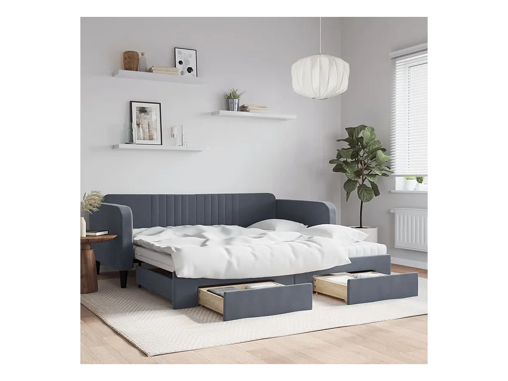 Slaapbank onderschuifbed lades 100x200 cm fluweel donkergrijs