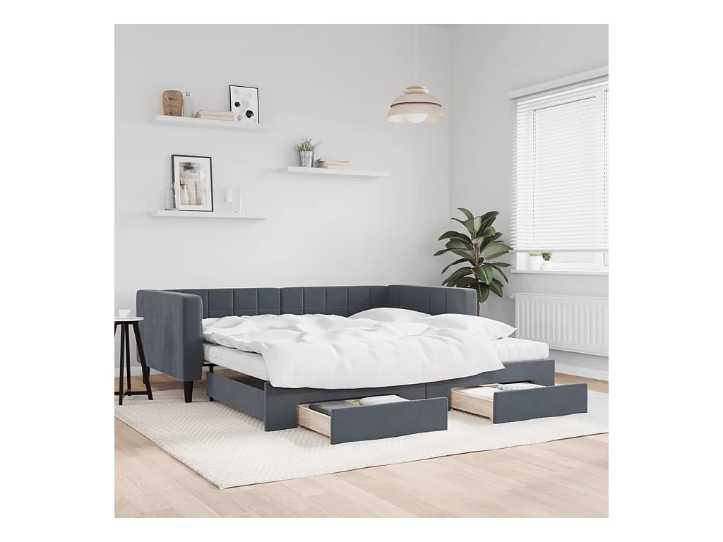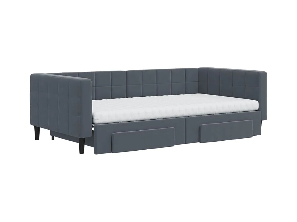 Lit de jour et gigogne et tiroirs gris foncé 100x200 cm velours