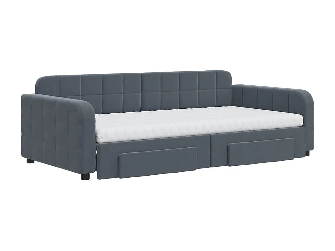 Lit de jour et gigogne et tiroirs gris foncé 100x200 cm velours