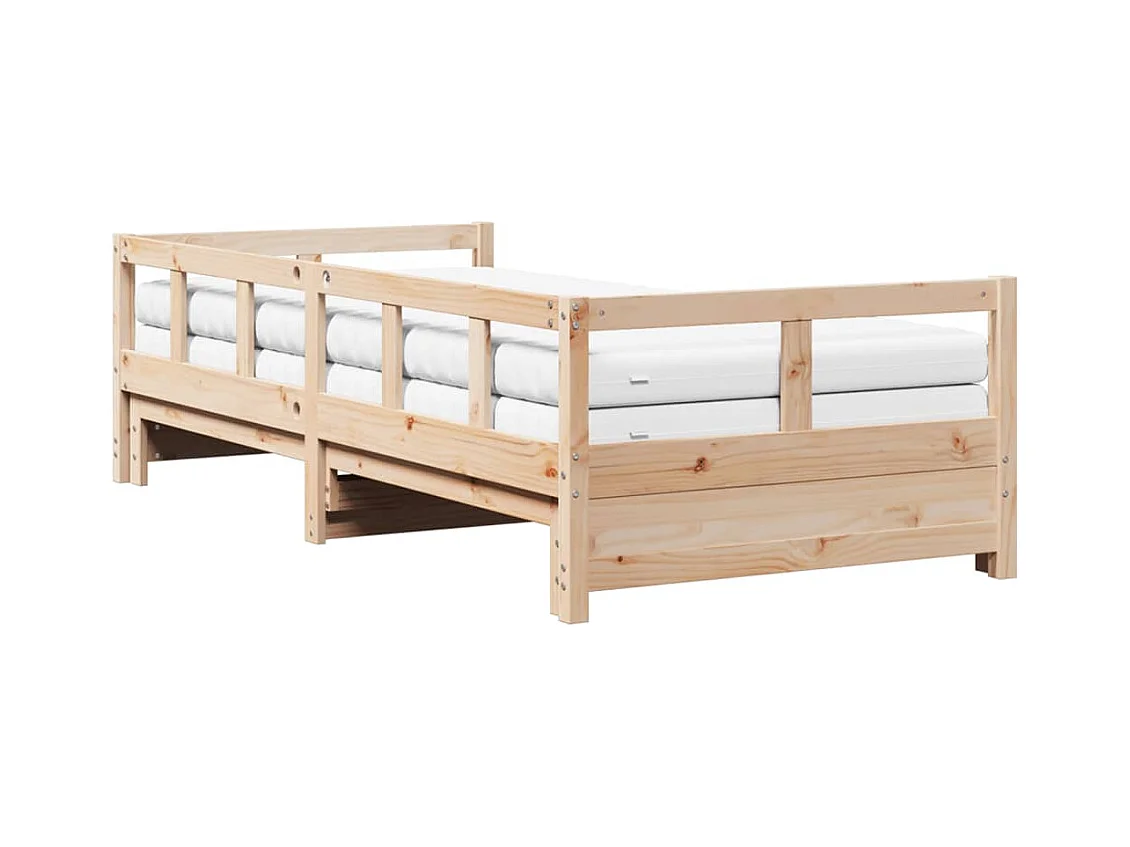 Slaapbank met onderschuifbed en matrassen 80x200 cm grenenhout