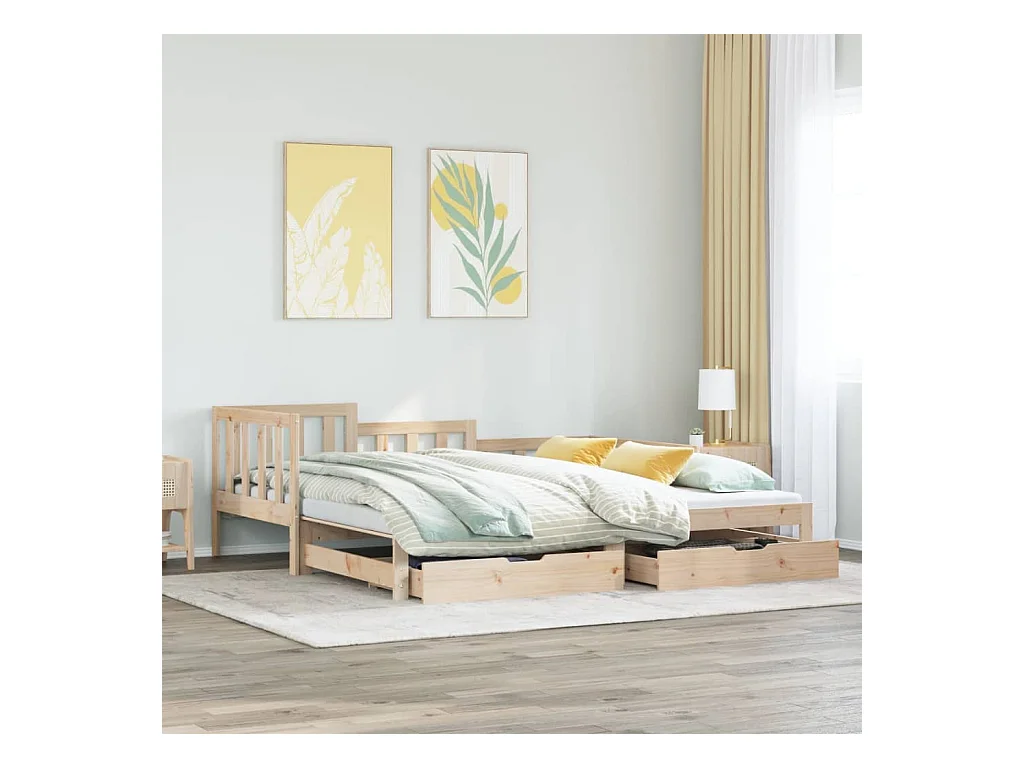 Lit coulissant Bois de pin solide 2x(90x190) cm