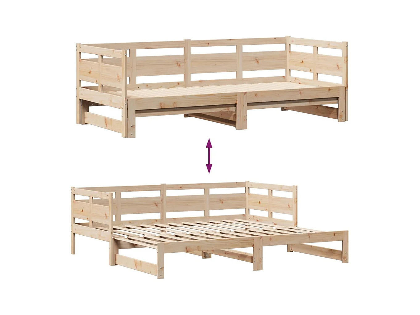 Lit de jour et lit gigogne sans matelas 90x190 cm bois massif