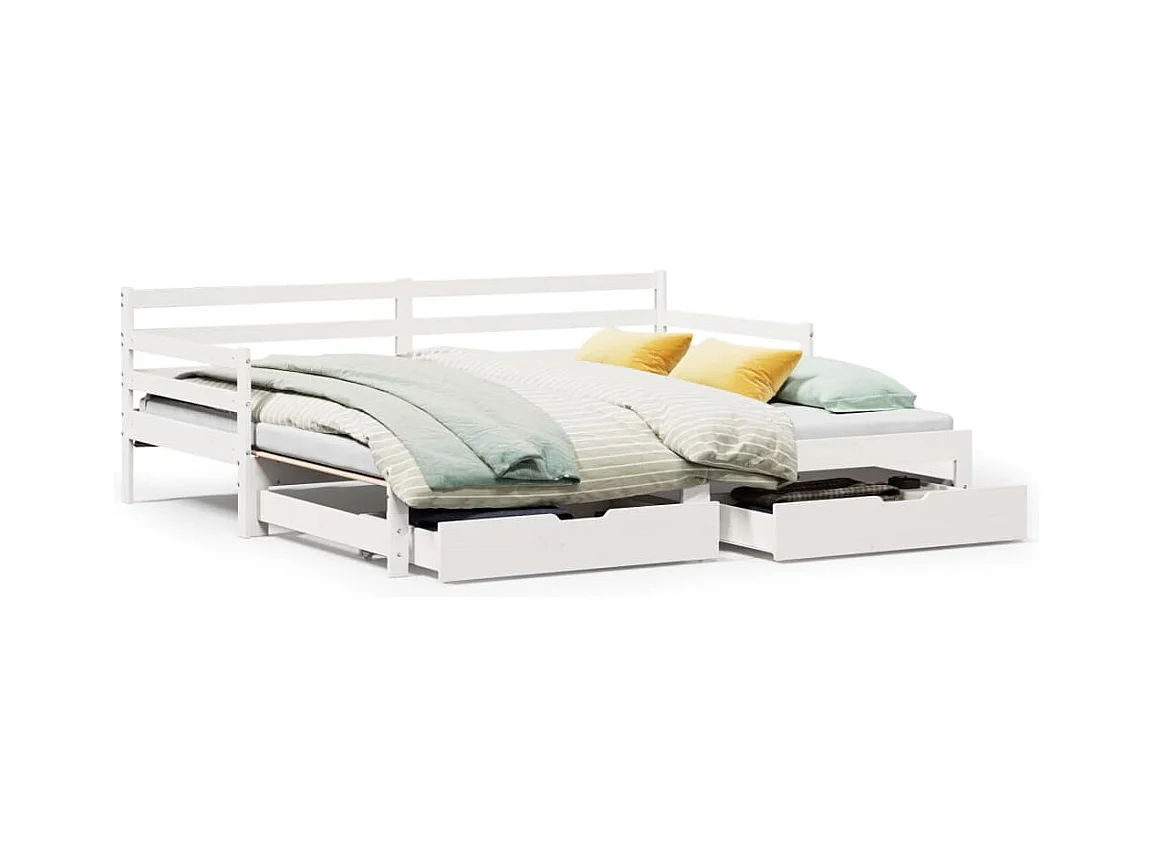 Lit de jour avec lit gigogne blanc 90x190 cm bois de pin massif
