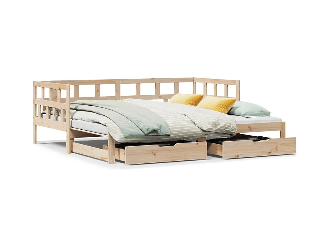 Slaapbank met onderschuifbed 90x200 cm massief grenenhout