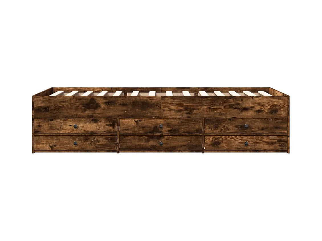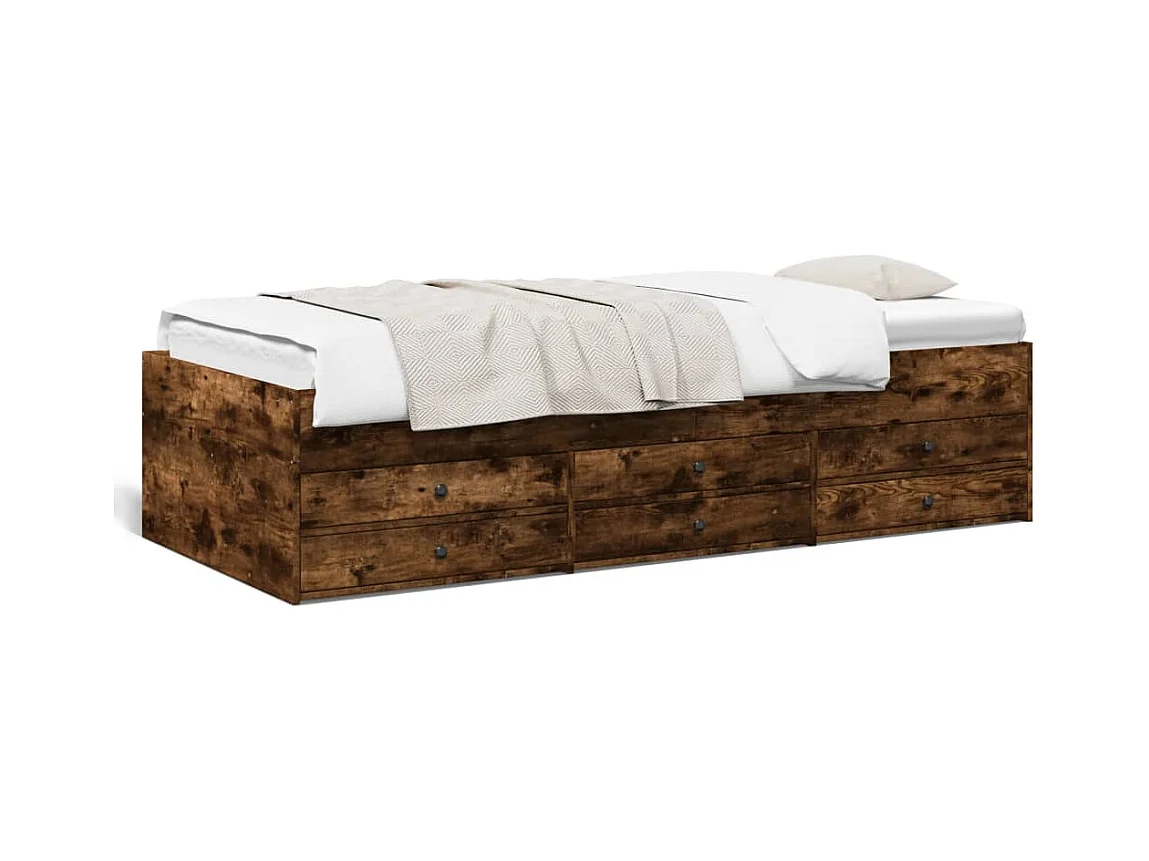 Lit simple et tiroirs chêne fumé 90x200 cm bois d'ingénierie FR60991