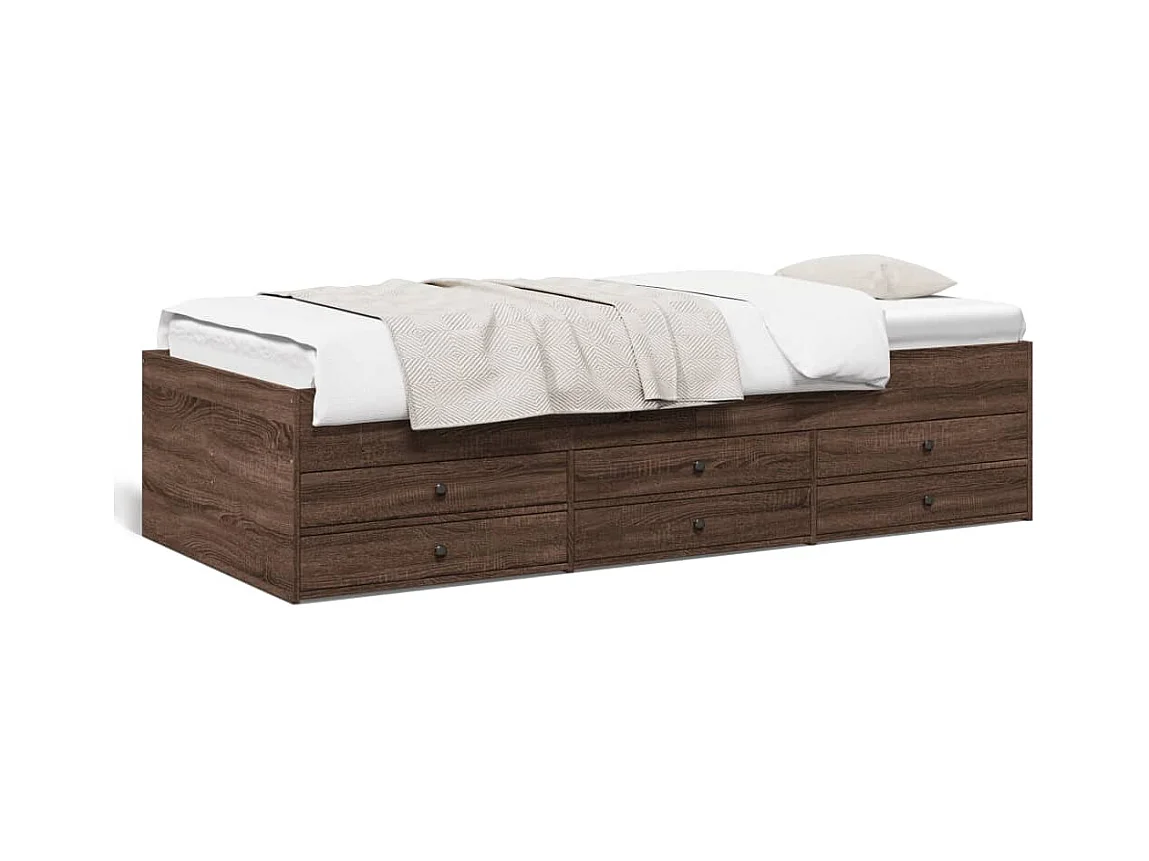 Lit simple et tiroirs chêne marron 90x200cm bois d'ingénierie FR51275