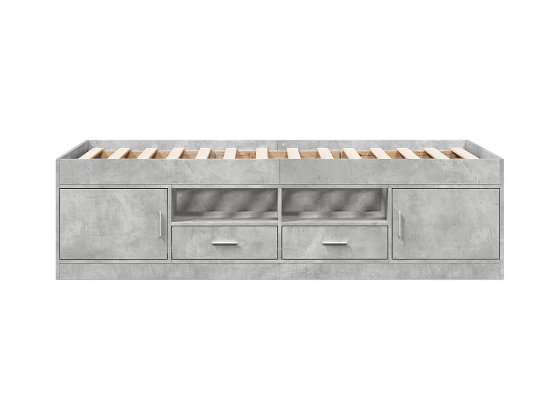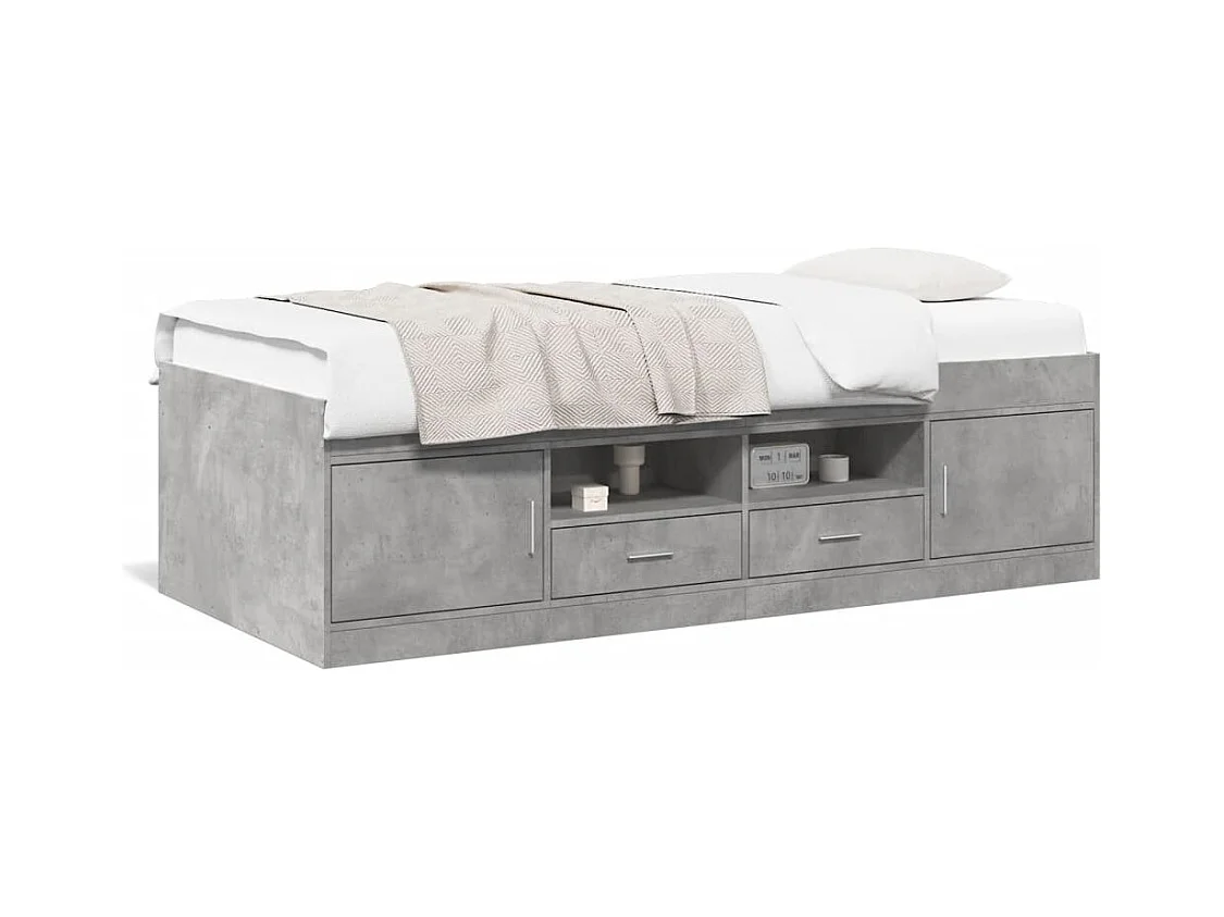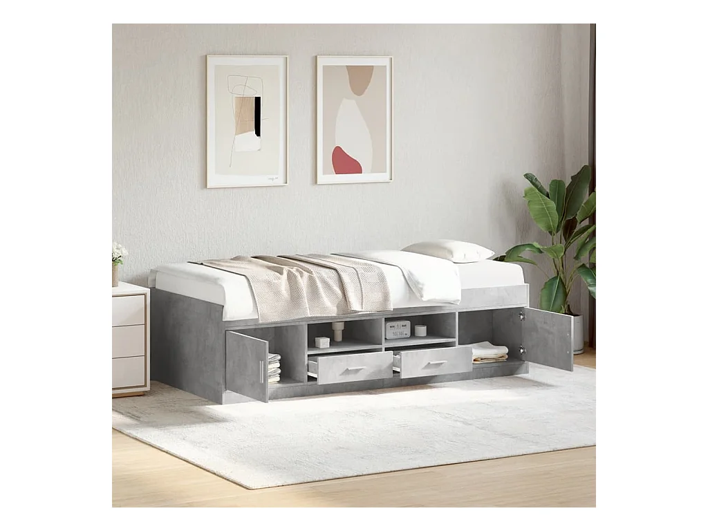 Lit simple et tiroirs gris béton 90x200 cm bois d'ingénierie FR44716