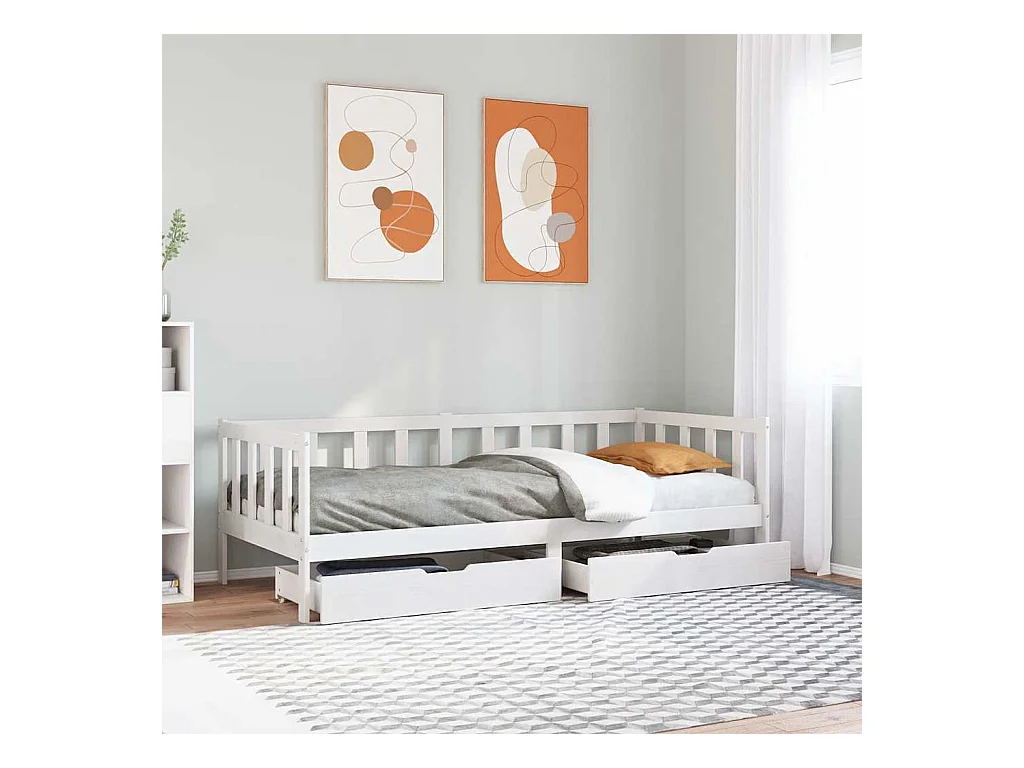 Lit de jour et tiroirs sans matelas blanc 80x200 cm bois massif