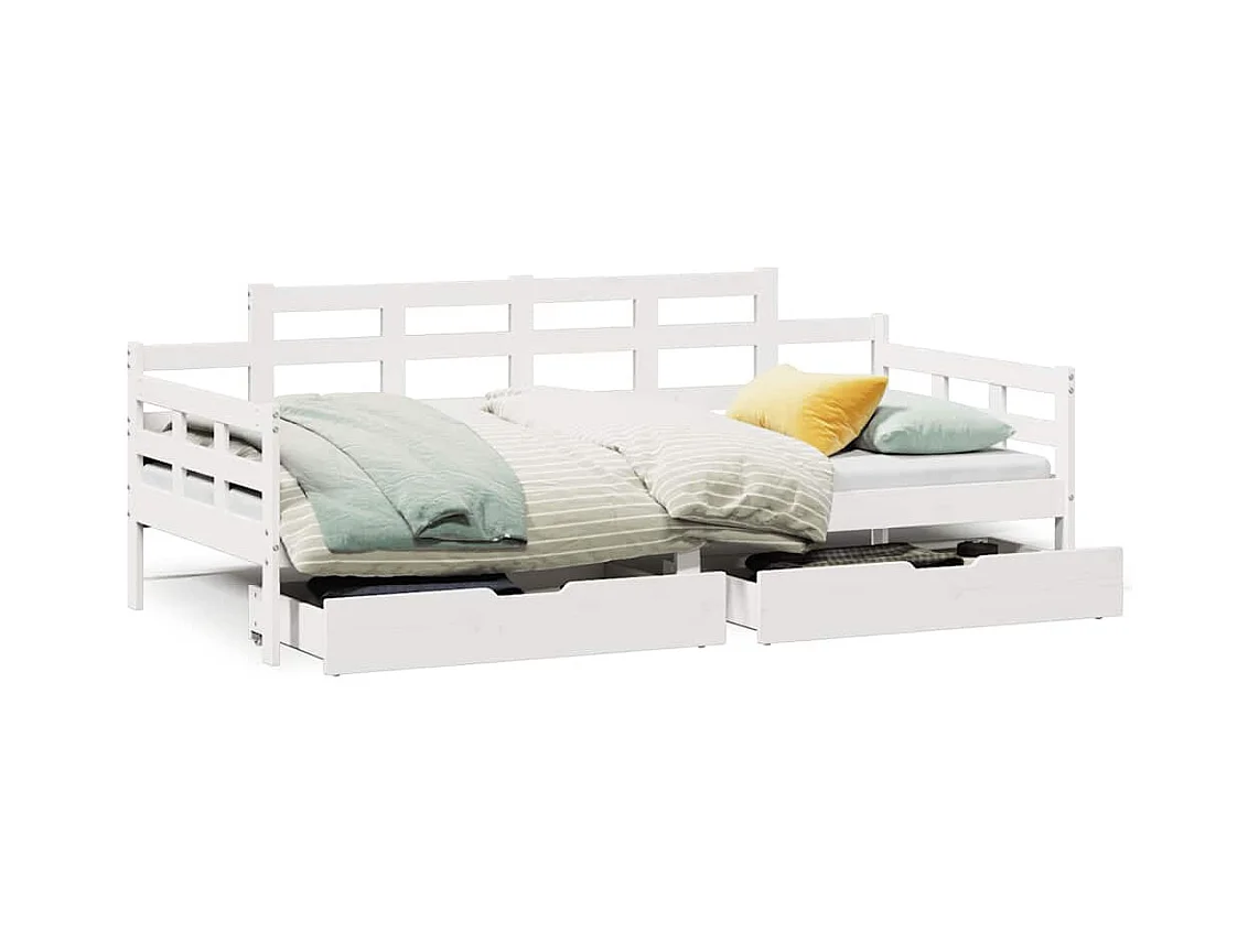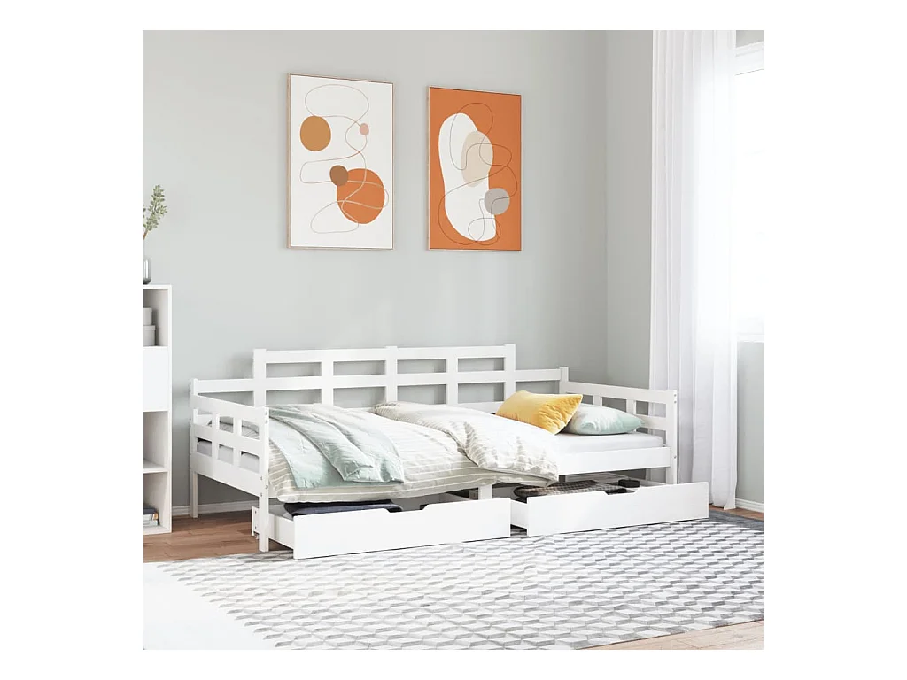 Lit de jour et tiroirs sans matelas blanc 90x200 cm bois massif