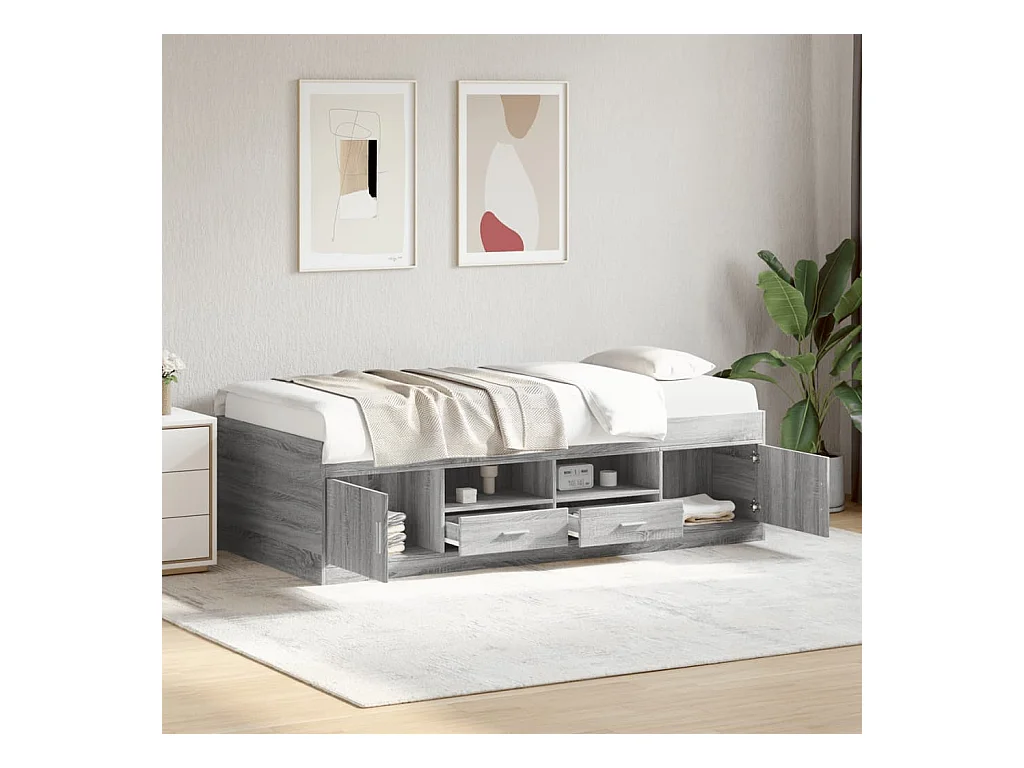 Lit simple et tiroirs sonoma gris 90x200 cm bois d'ingénierie FR80757