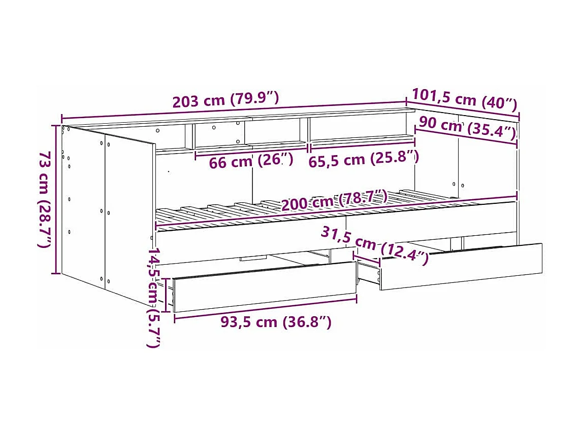 Lit de jour Gris 90 x 200 cm Bois d'ingénierie