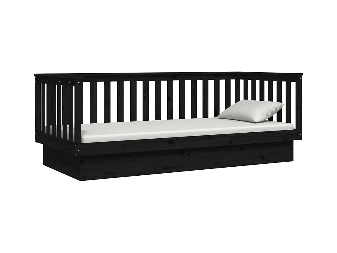 Lit de jour Noir 100x200 cm Bois de pin massif