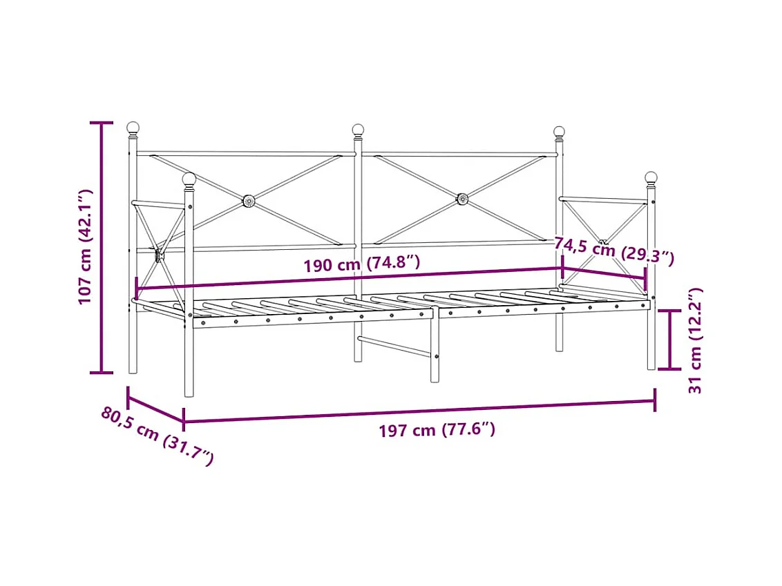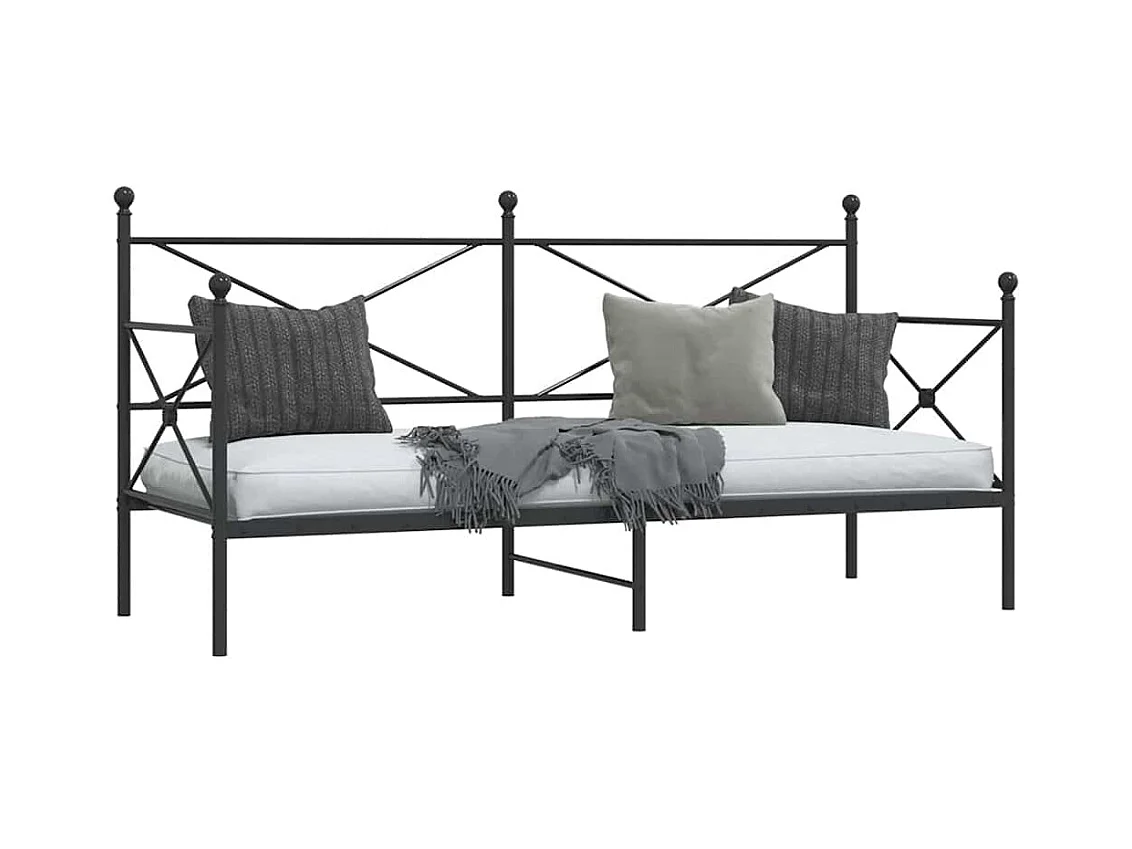 Cadre de lit métal sans matelas avec pied de lit noir 107x203cm