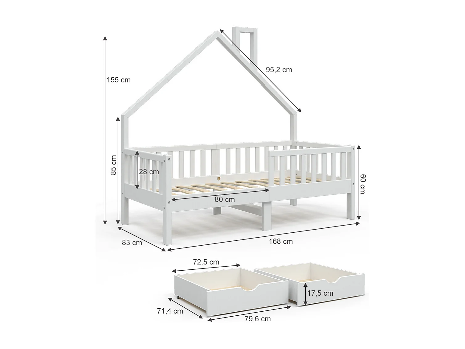 Lit de maison blanc 168x83x155 noemi