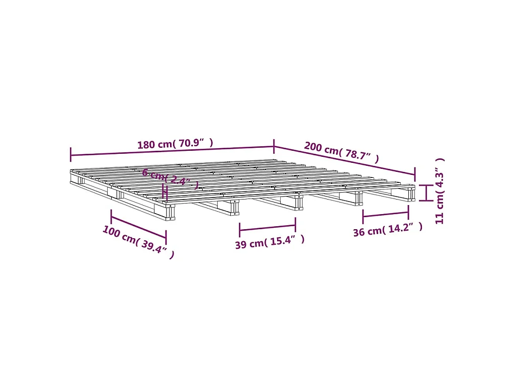 Lit de palette 180x200 cm bois de pin massif très grand