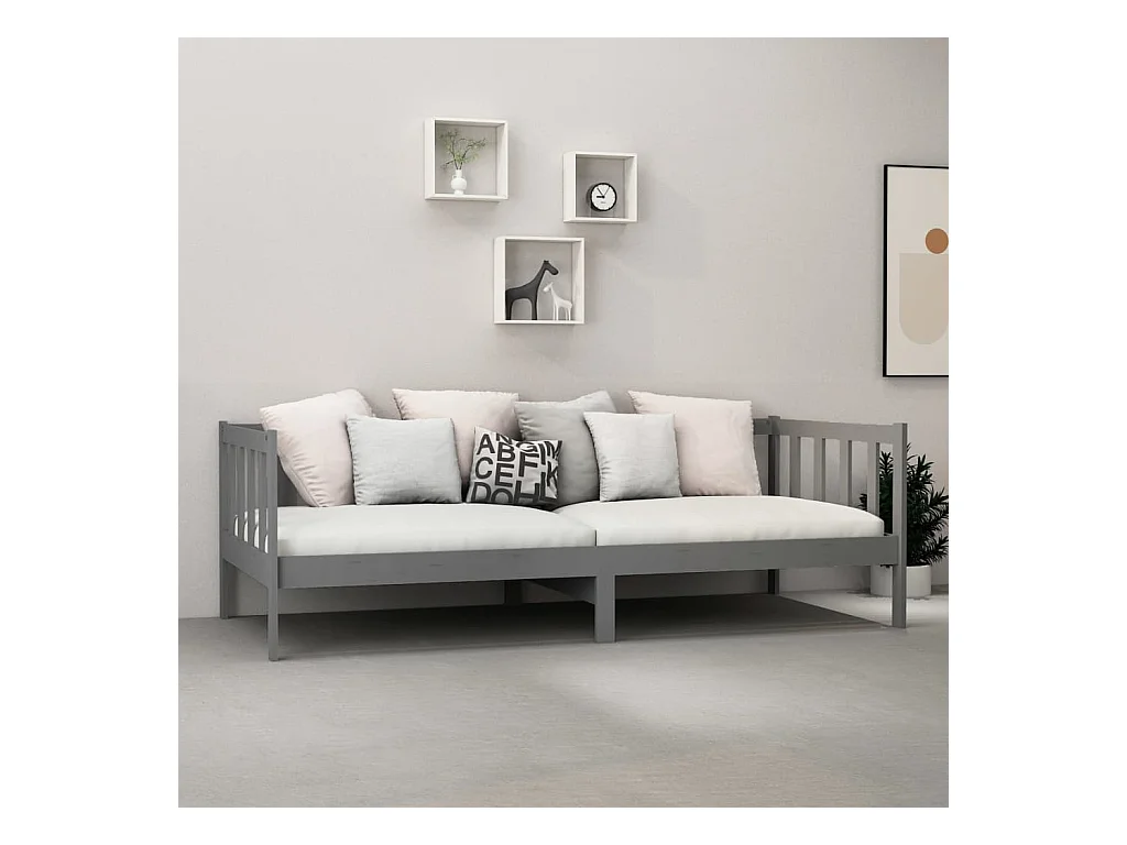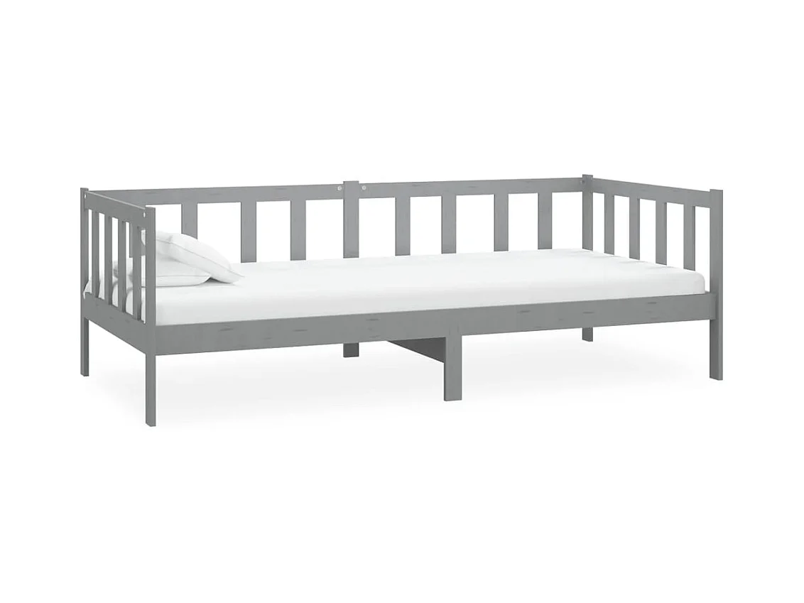 Lit de repos avec matelas 90x200 cm Gris Bois de pin massif