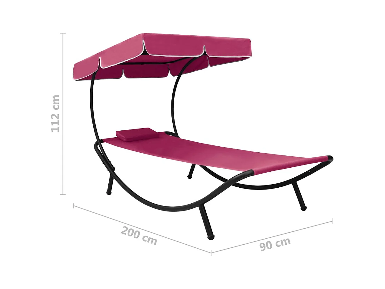 Lit de repos d'extérieur avec auvent et oreiller rose