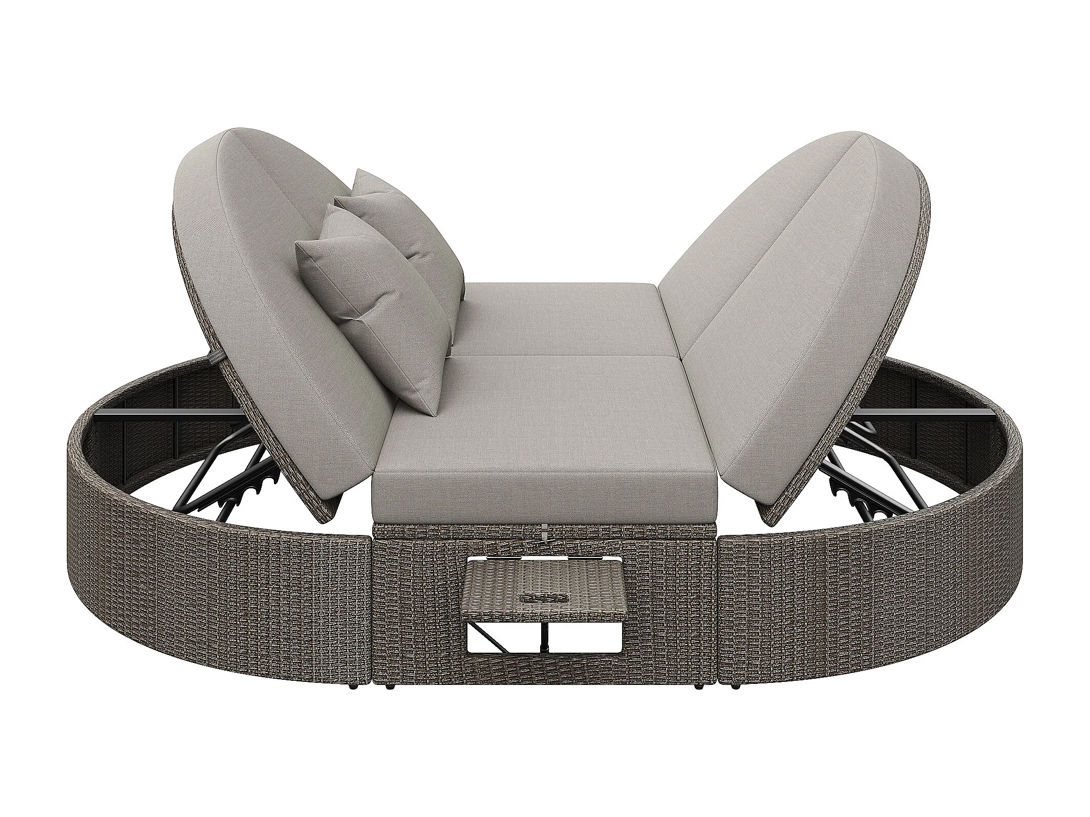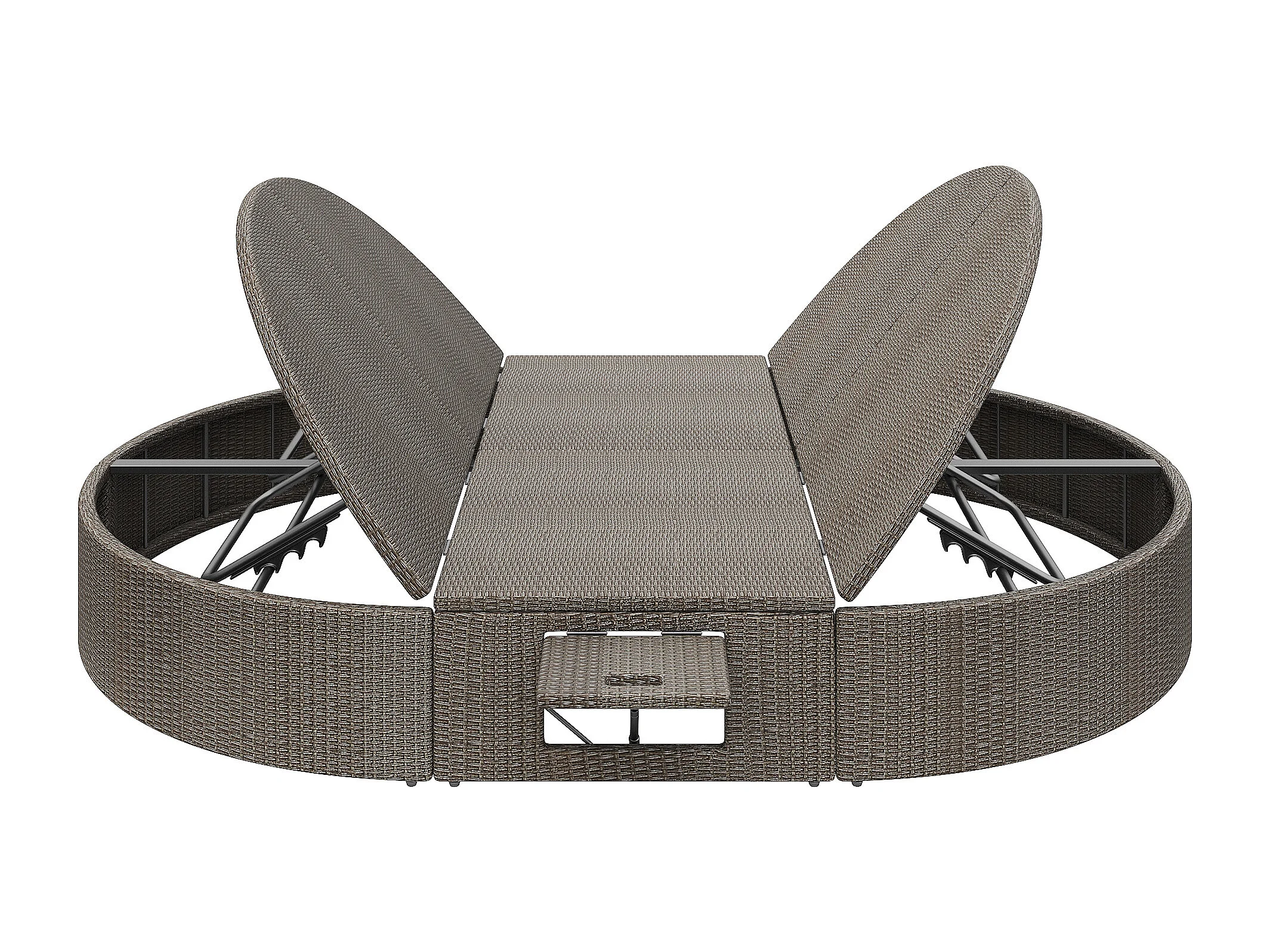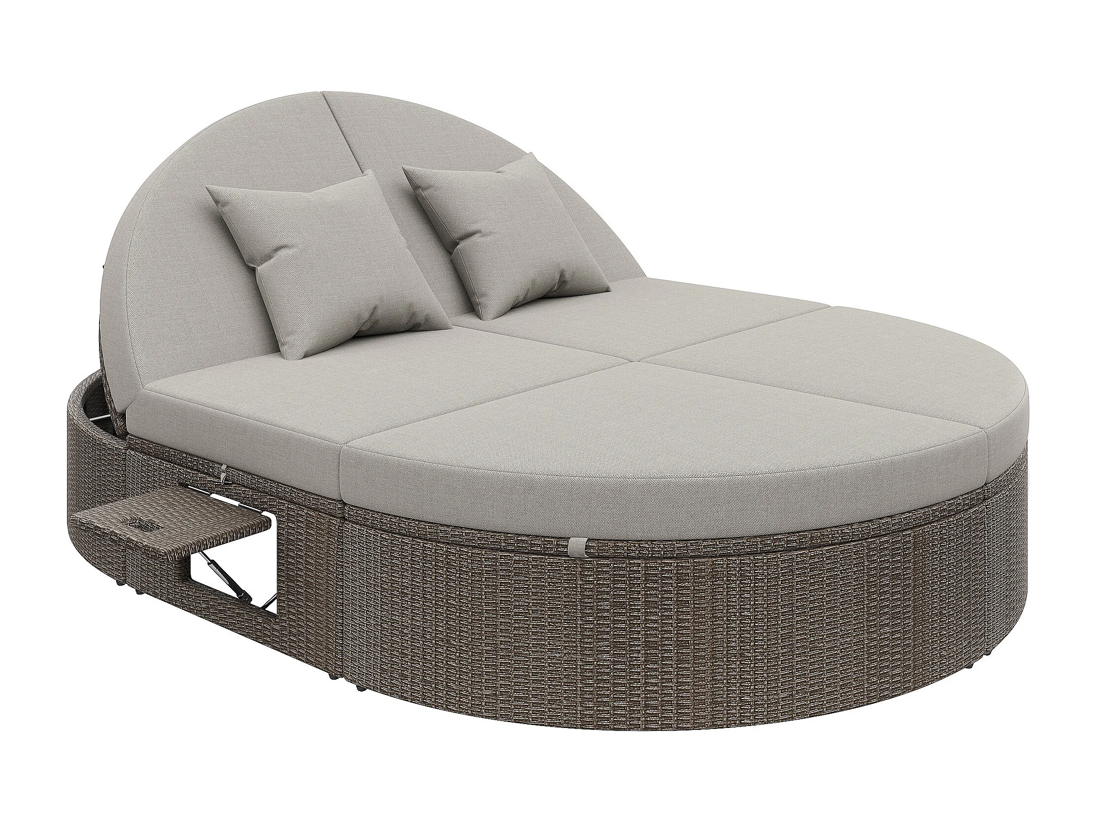 Lit de repos d'extérieur réglable 2 places - Résine tressée et métal - Chaise longue - Gris