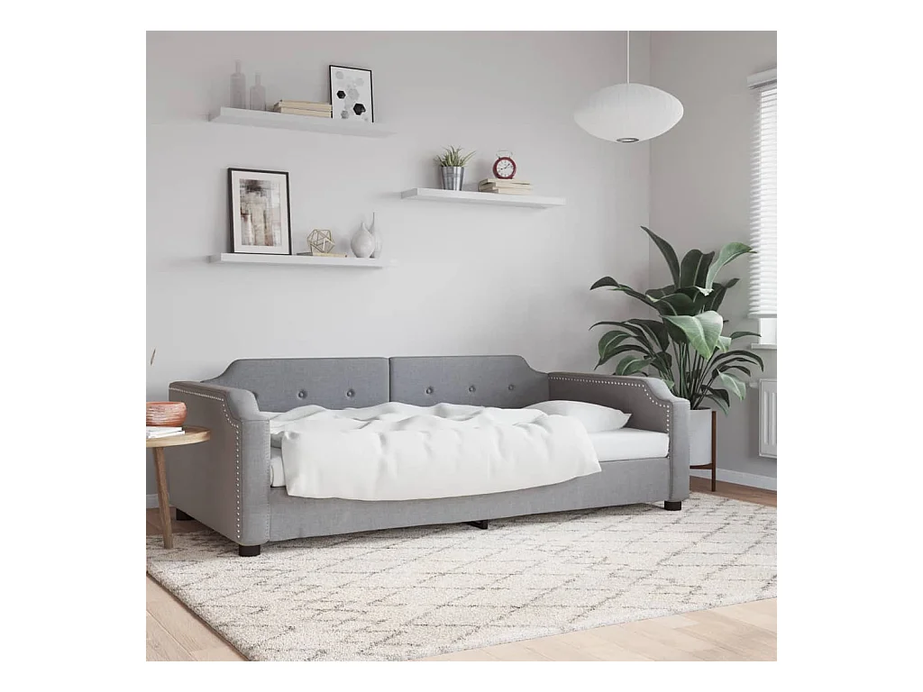 Lit de jour avec gigogne et matelas gris clair 100x200 cm tissu