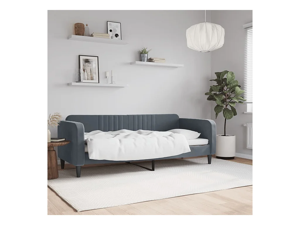 Lit de jour avec matelas gris foncé 80x200 cm tissu