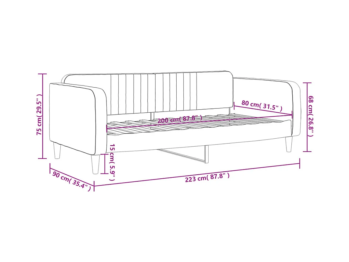 Lit de jour avec gigogne et tiroirs sans matelas 80x200 cm