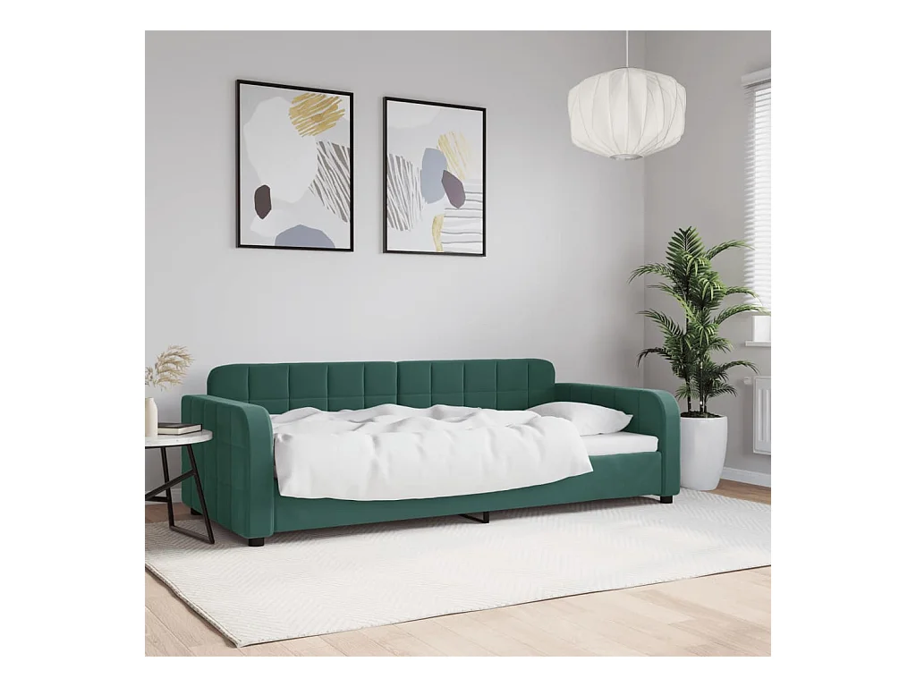 Lit de jour avec matelas vert foncé 90x200 cm velours