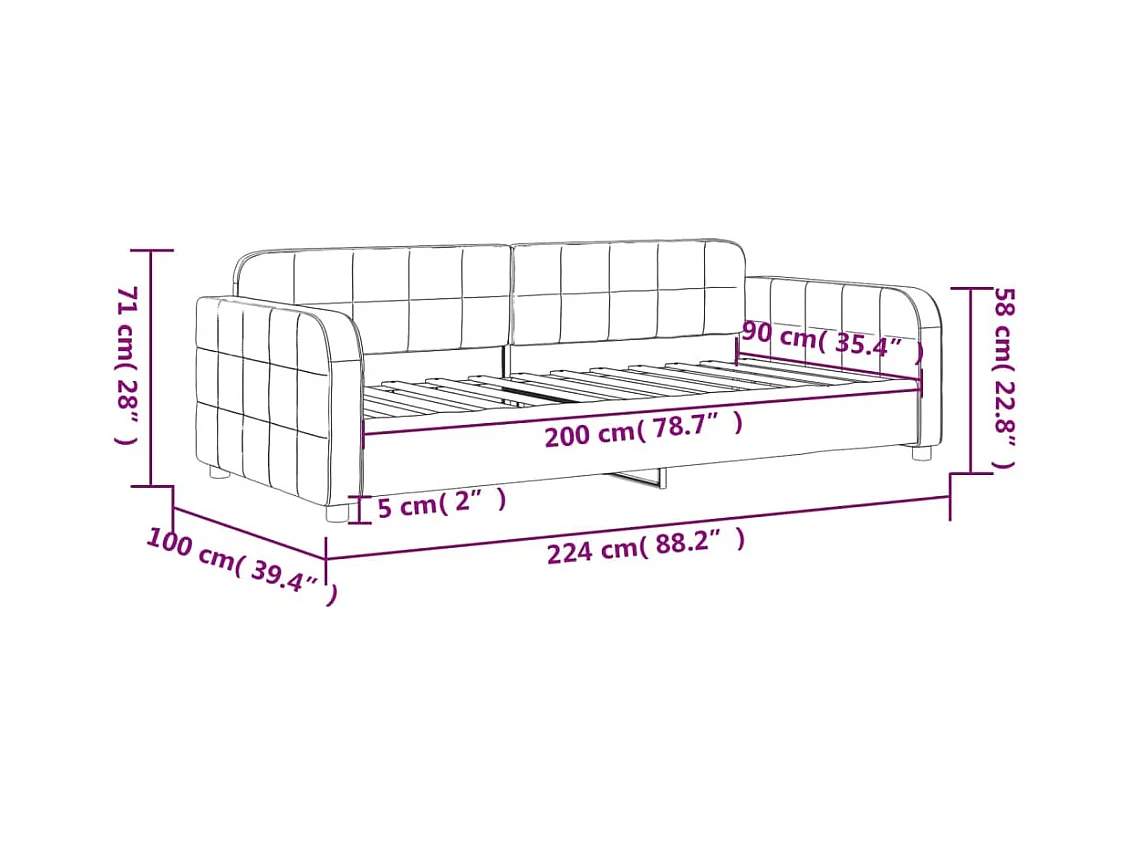 Lit de jour avec gigogne et tiroirs sans matelas 90x200 cm