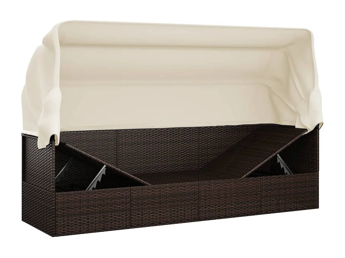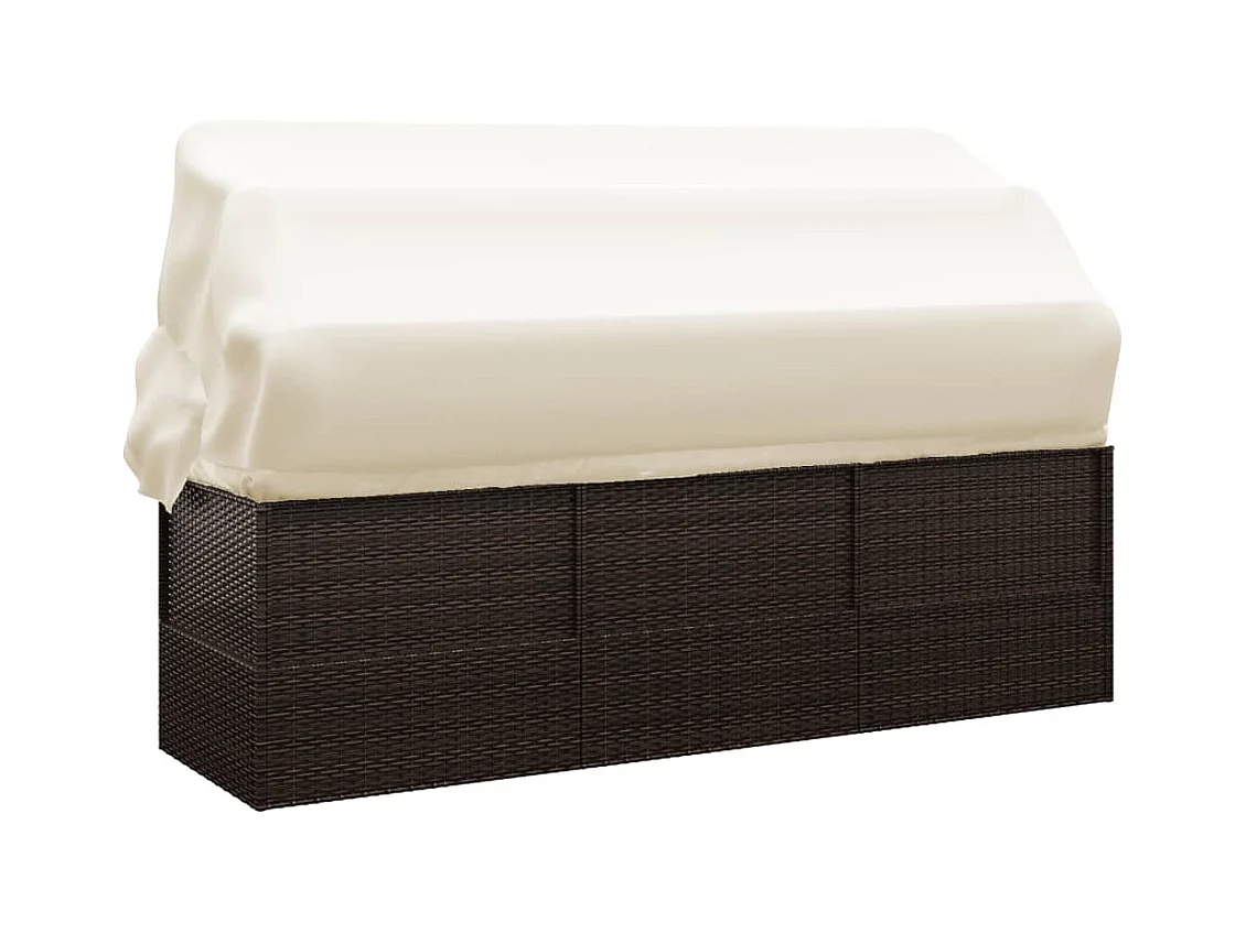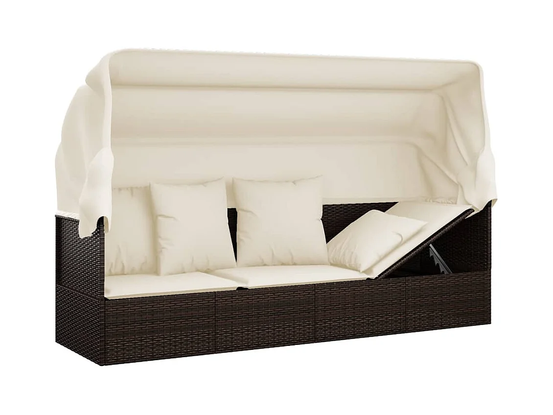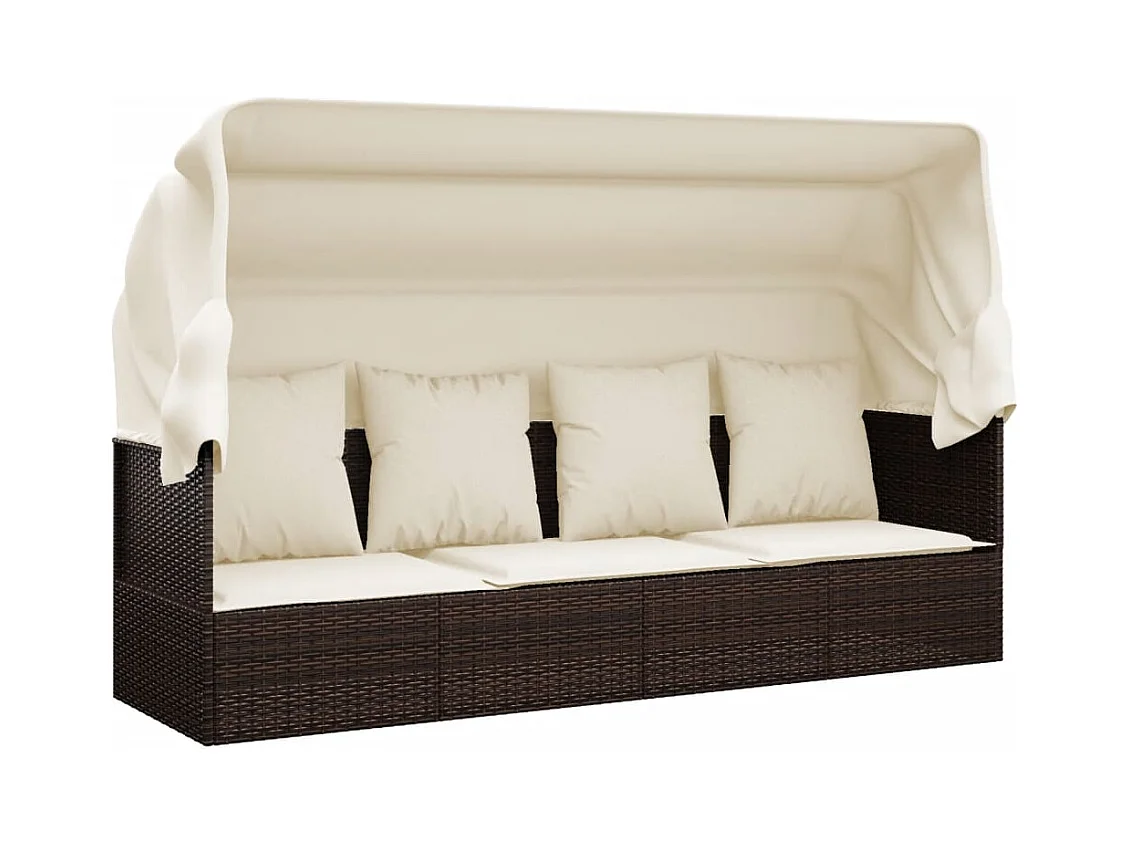 Lit de salon d'extérieur toit et coussins Marron Résine tressée
