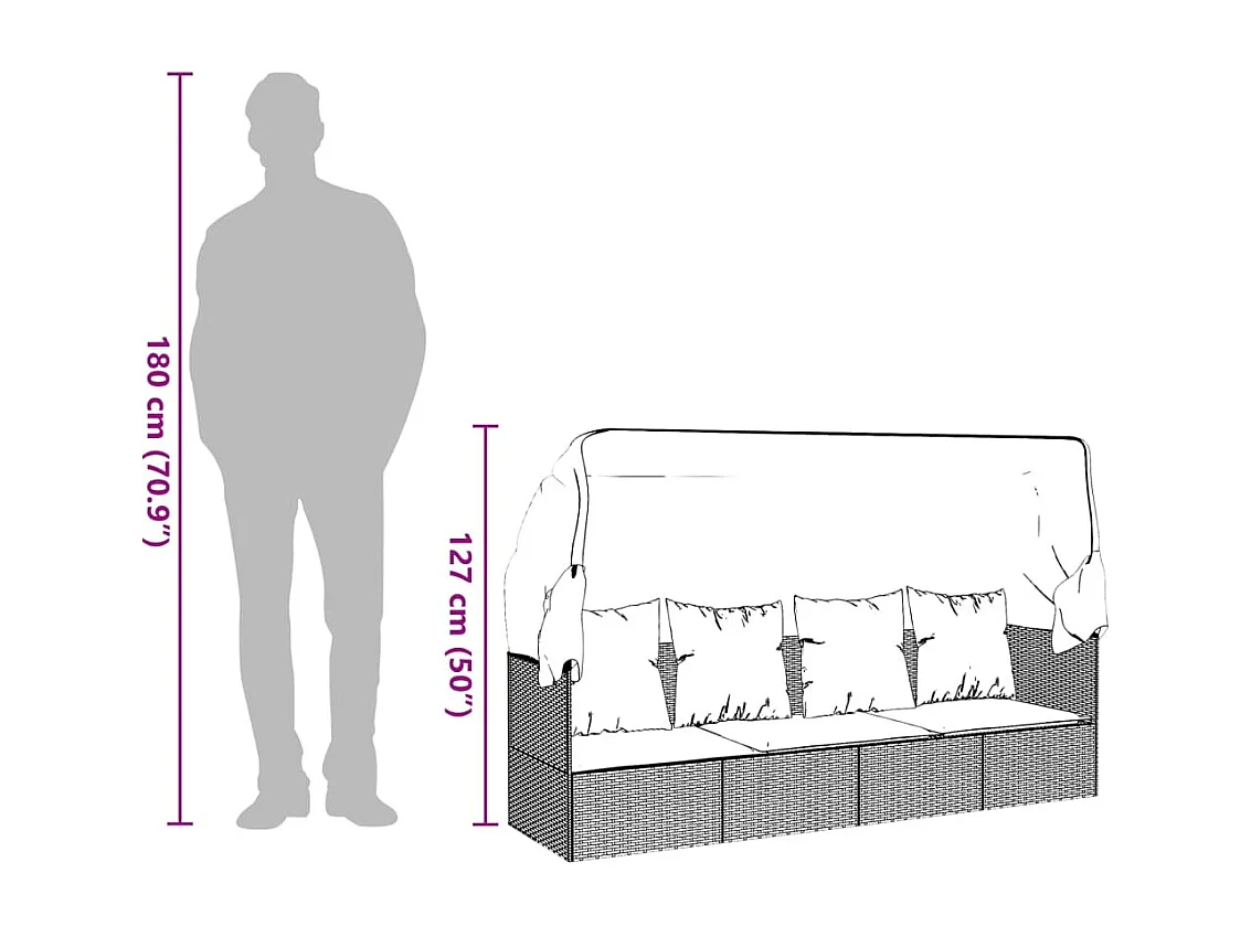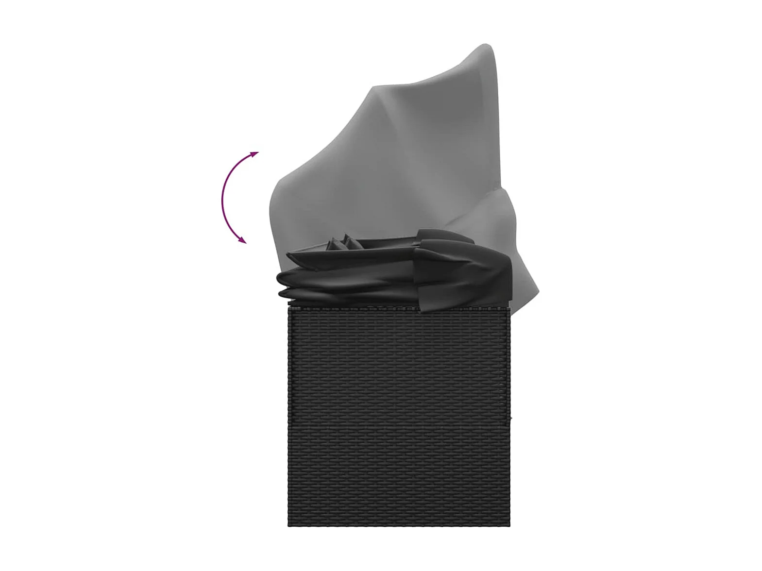 Lit de salon d'extérieur toit et coussins Noir Résine tressée
