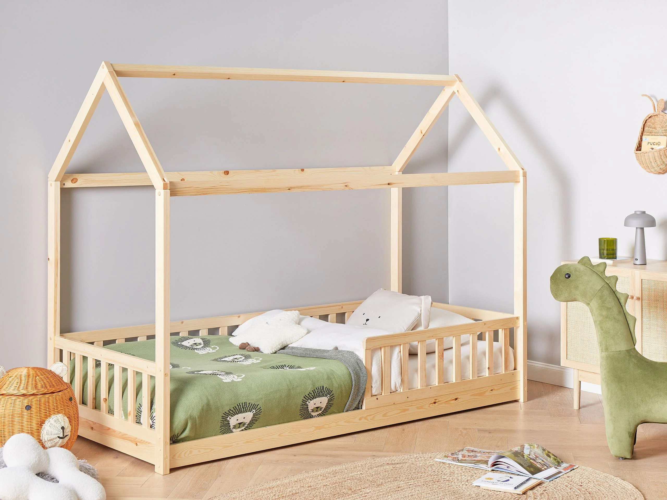 Lit d'enfant Maison Bois de pin COSSAYE 90 x 200 cm Marron clair