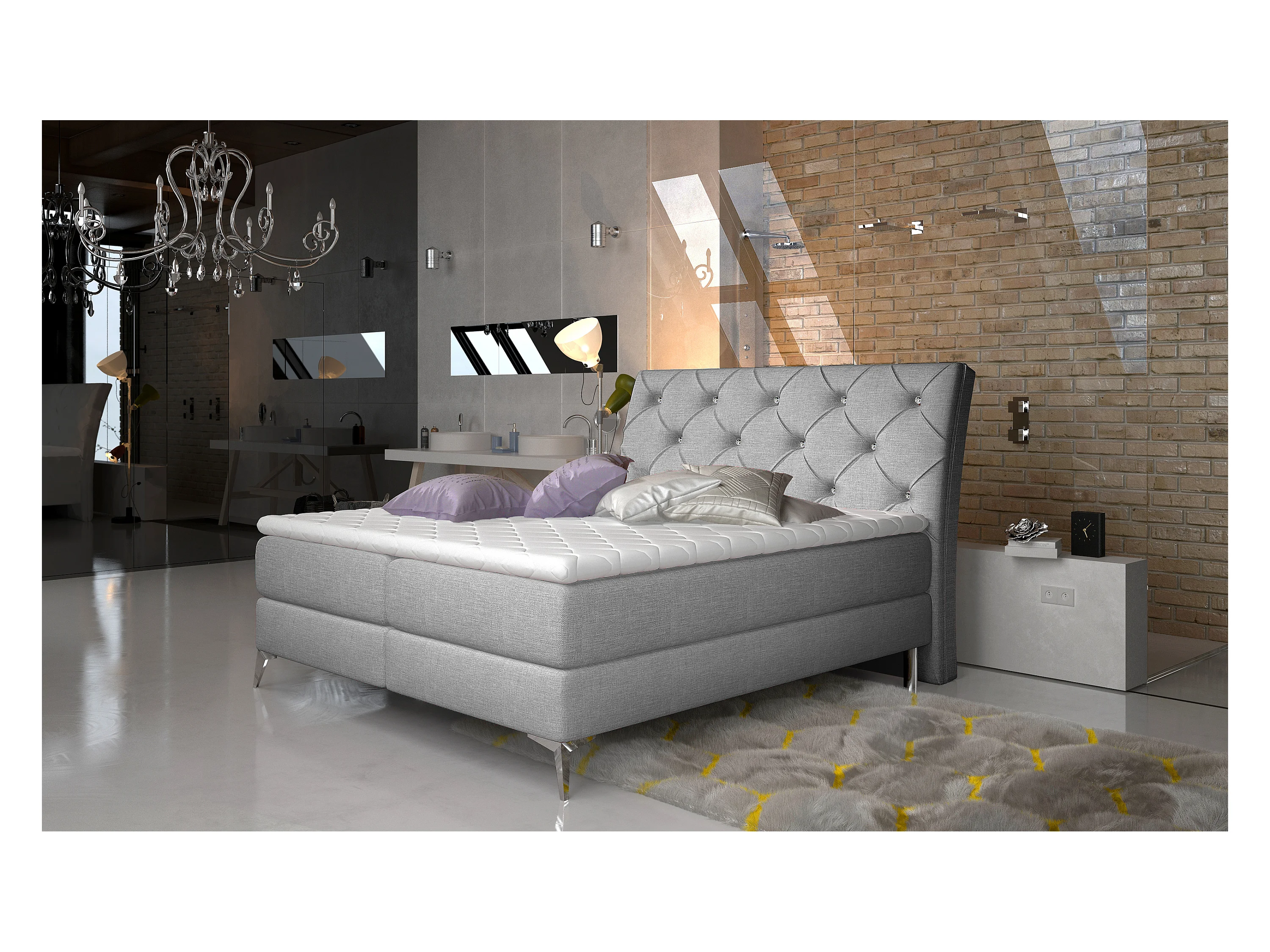 Lit continental tissu gris avec matelas et surmatelas Louna-180x200
