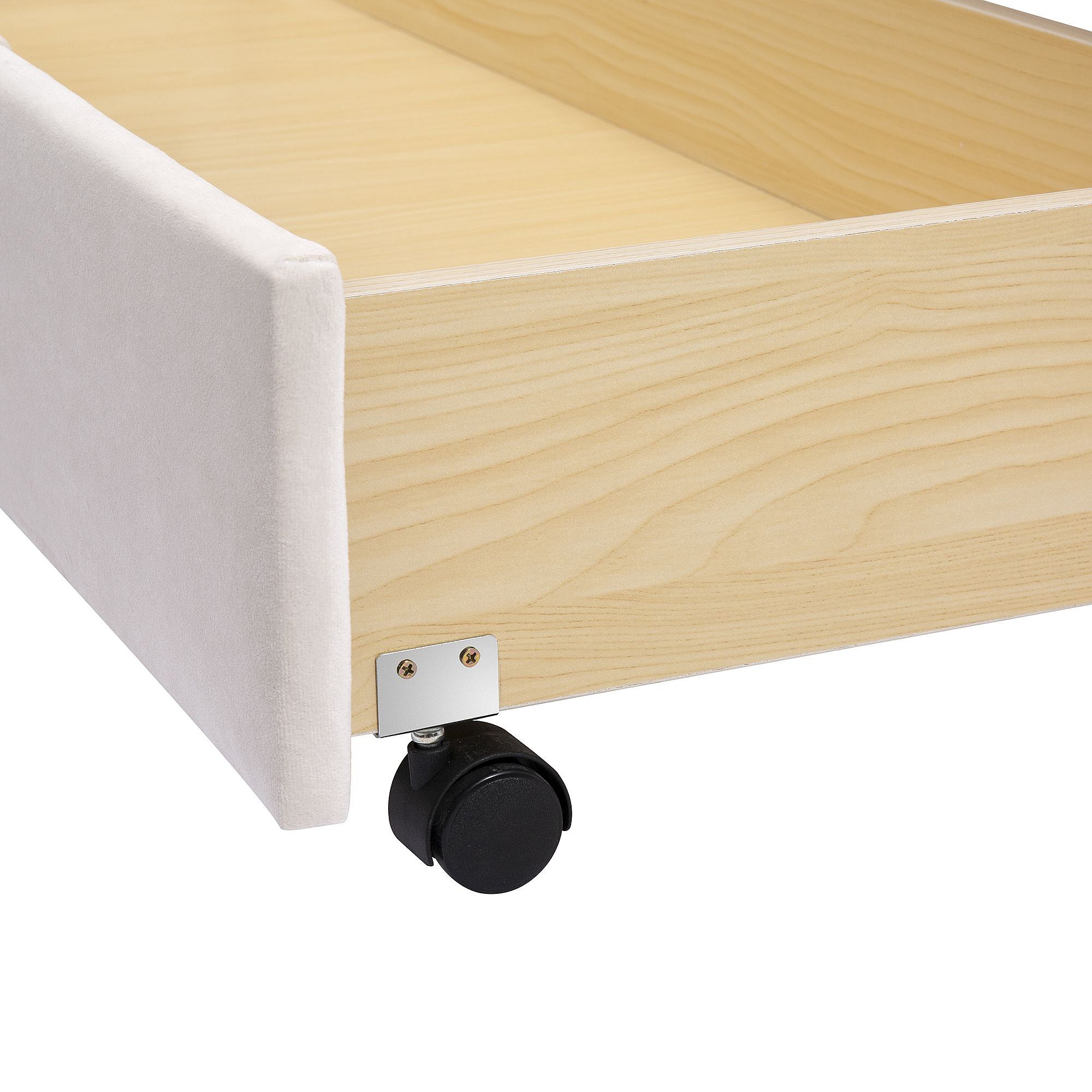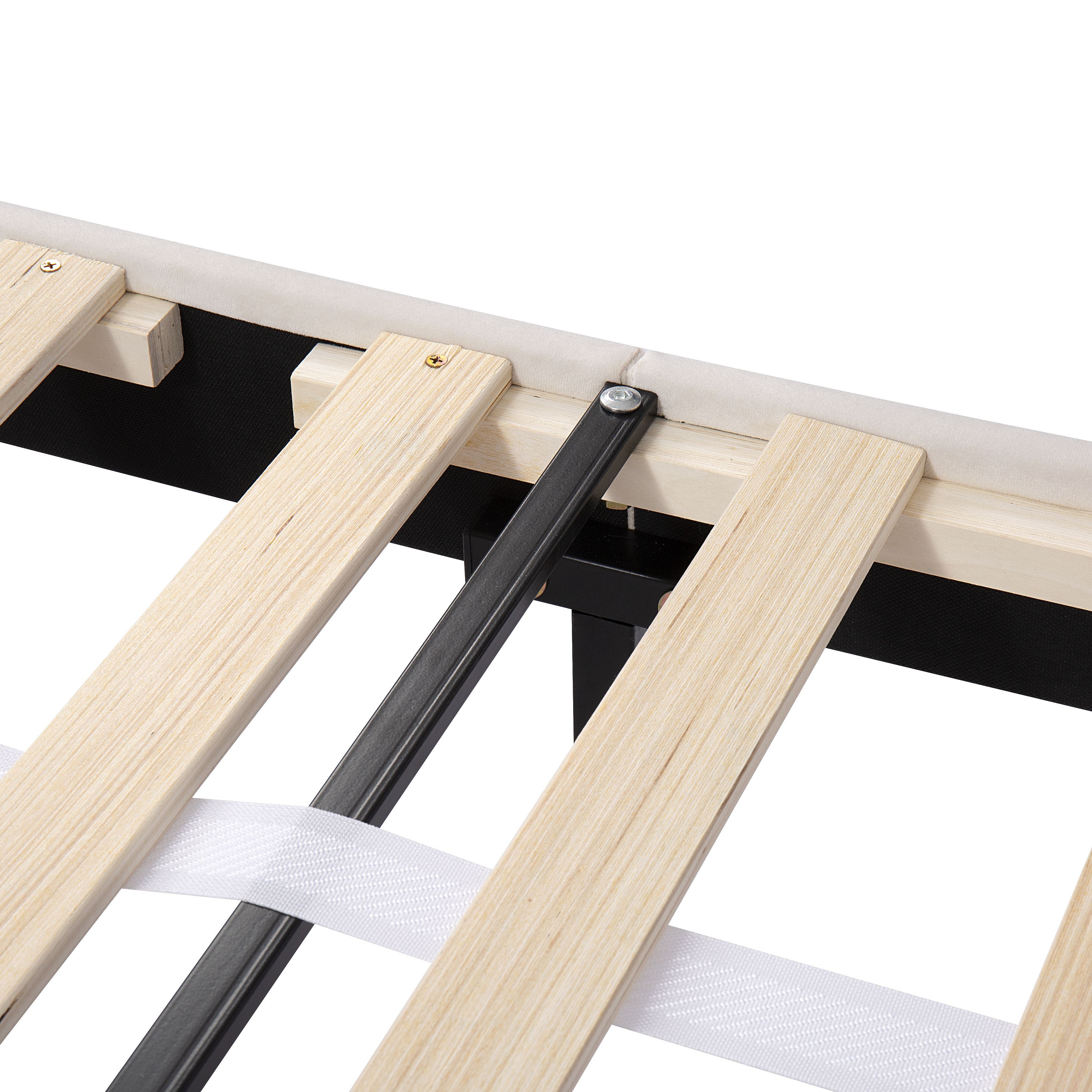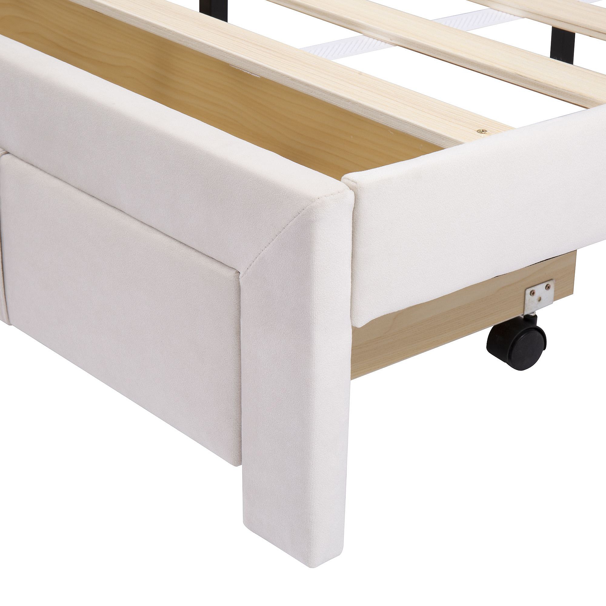 Lit double 140 x 200 cm - Lit adulte avec 1 grand tiroir et 4 tiroirs gigognes - velours beige - matelas non inclus