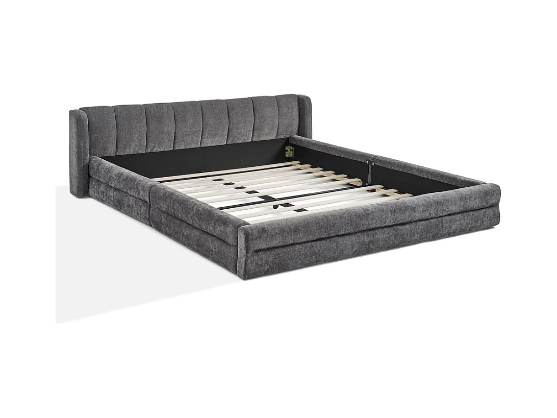 Lit double 140 x 200 cm - Lit adulte avec dossier moelleux - chenille gris - matelas non inclus