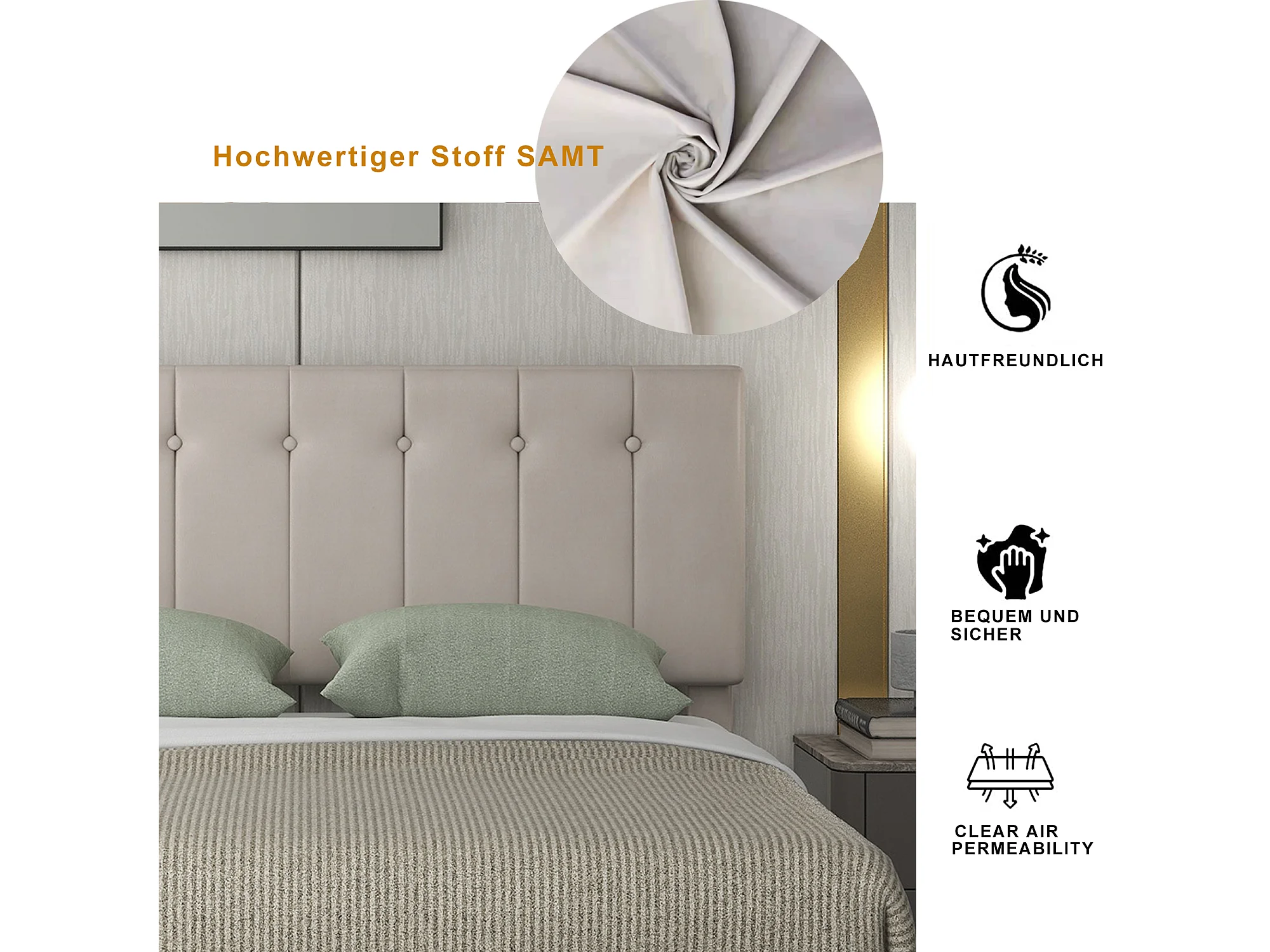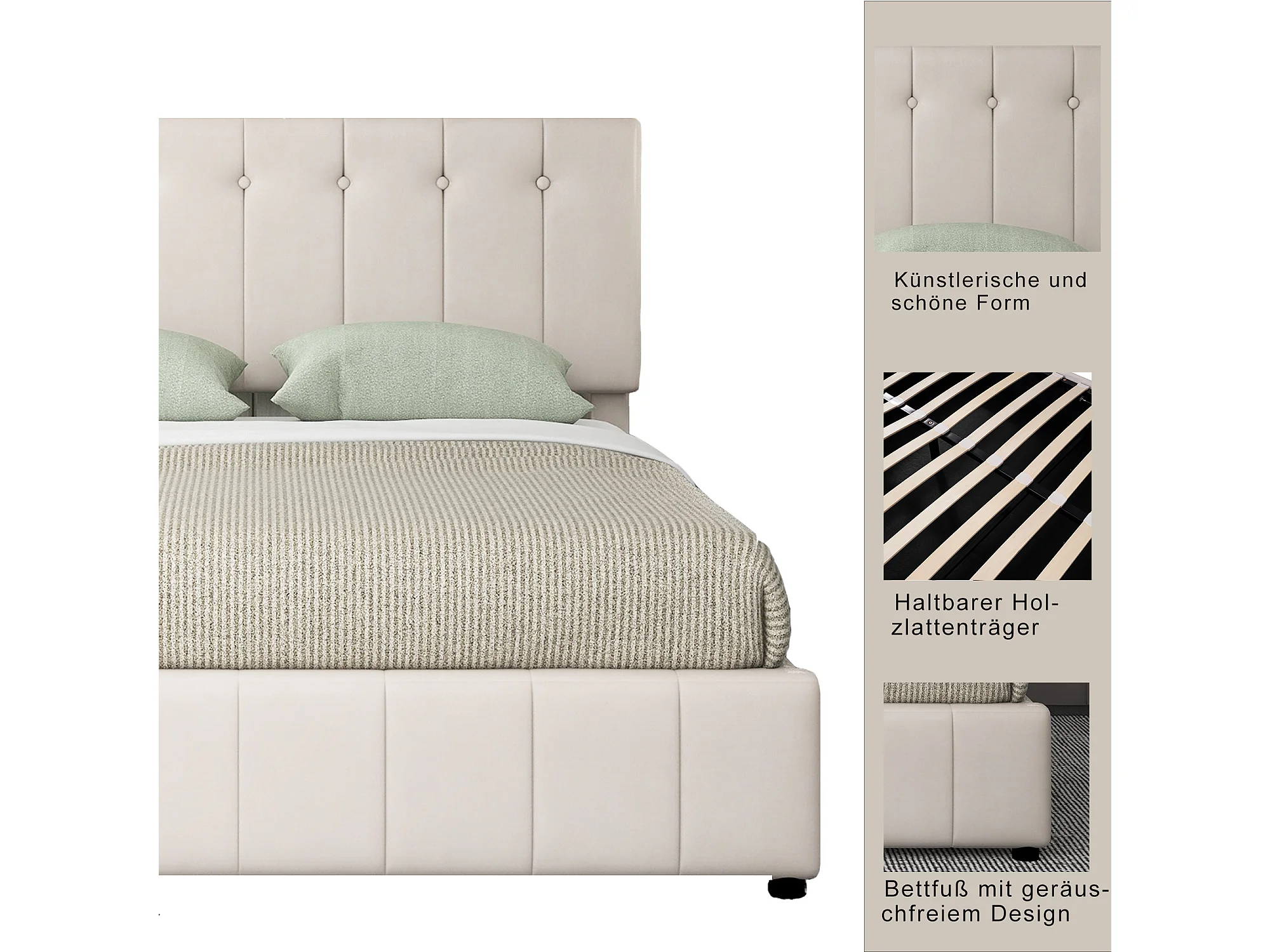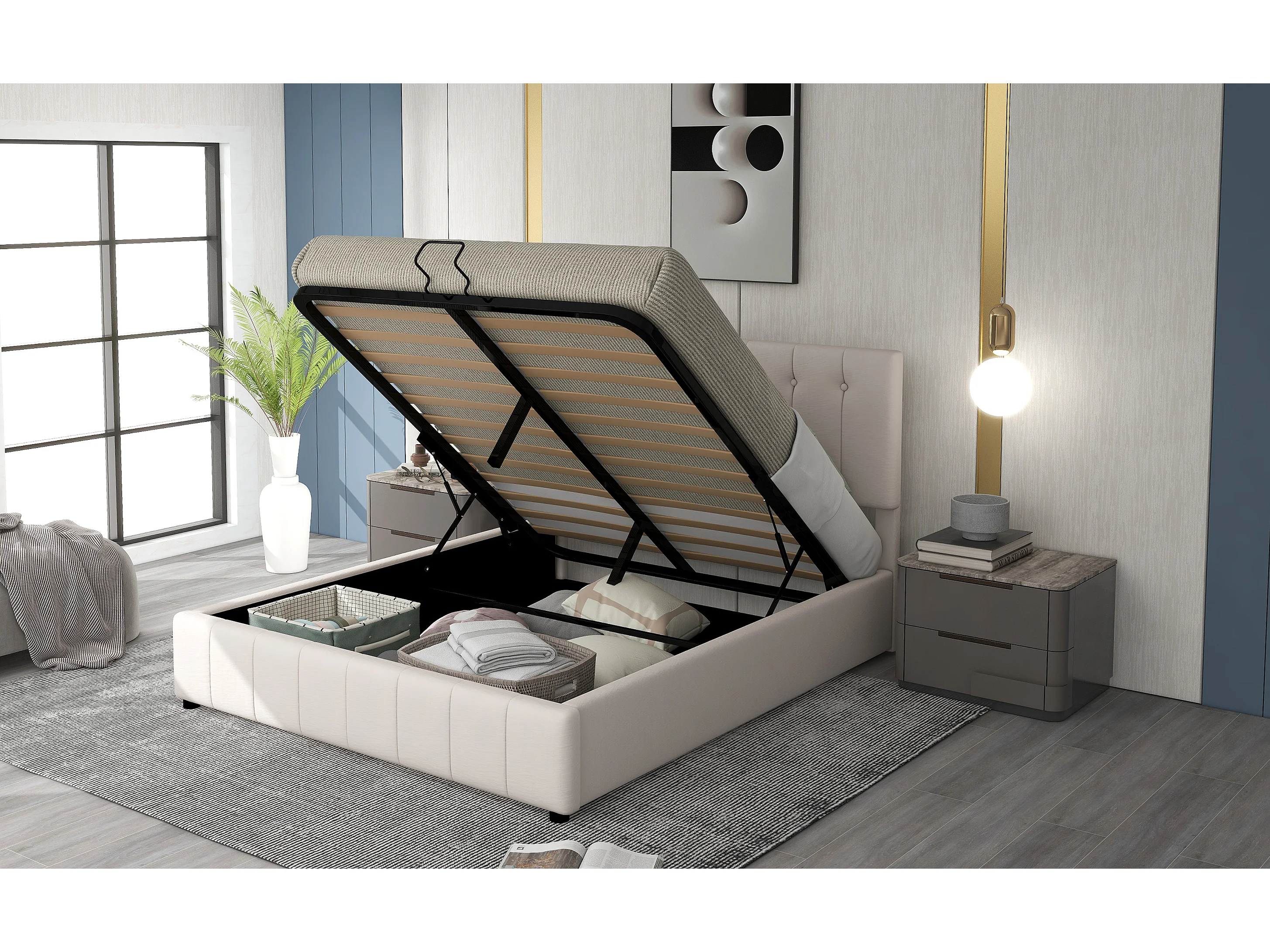 Lit double 140x200cm, rangement hydraulique, tête réglable, sommier métal, simili cuir crème (203x140x106cm)