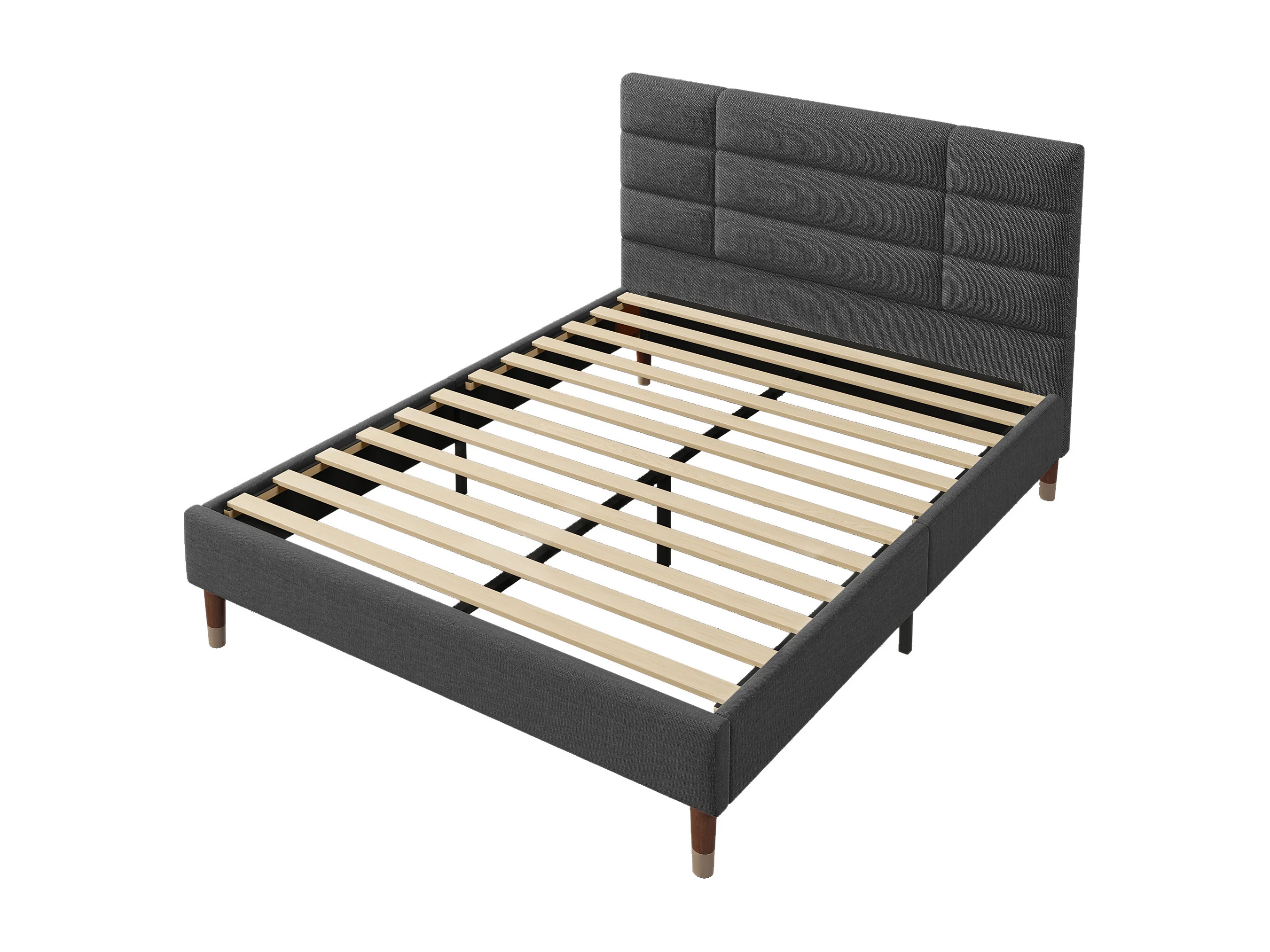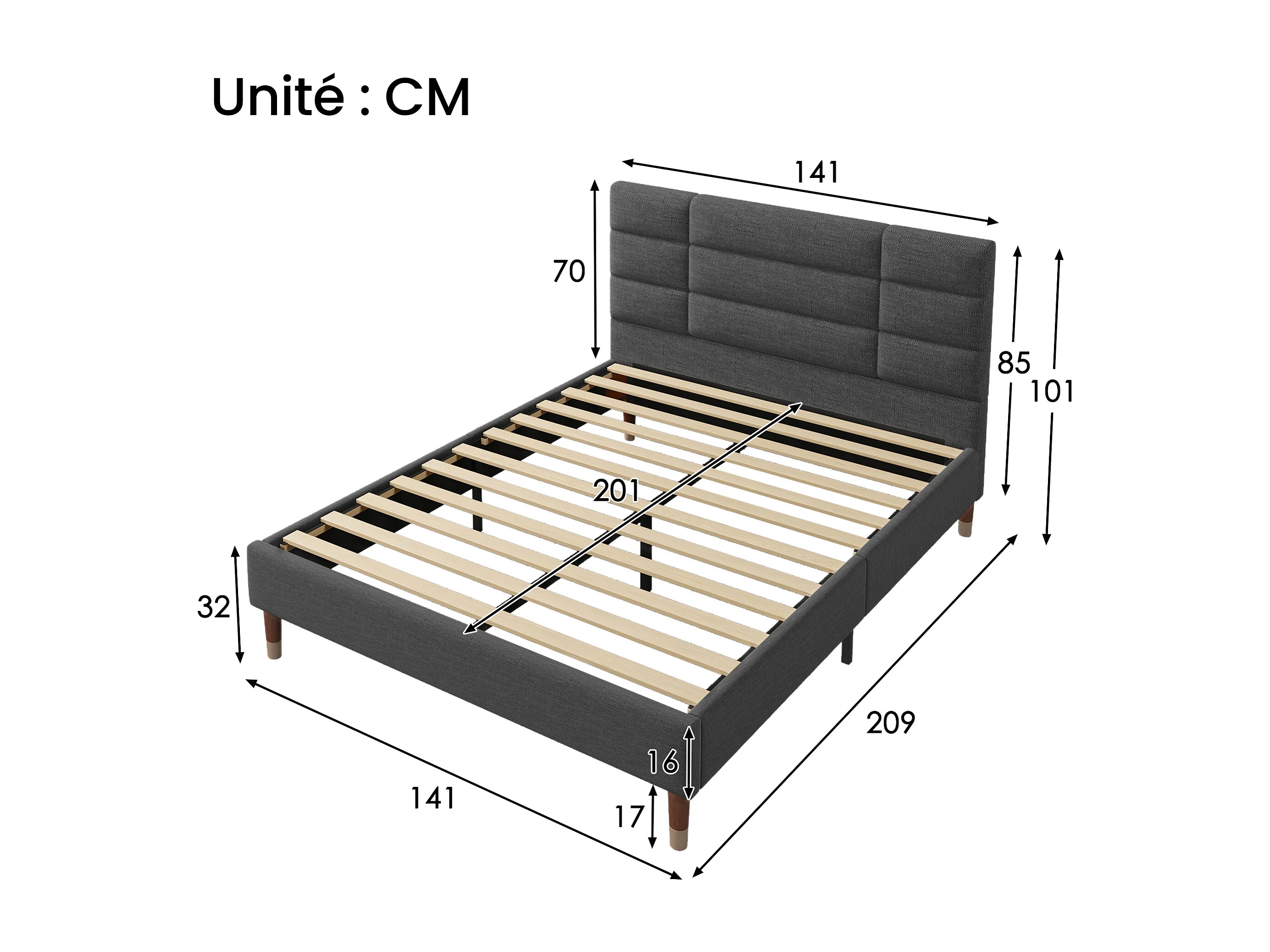 Lit 140 x 200 cm - Lit Adulte Rembourré En Lin - Avec Sommier À Lattes Et Rangement Sous-Lit - Gris Foncé - Sans matelas - WF196944