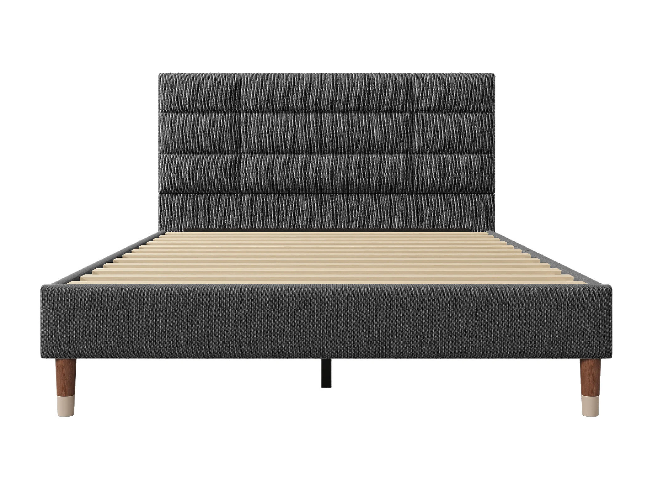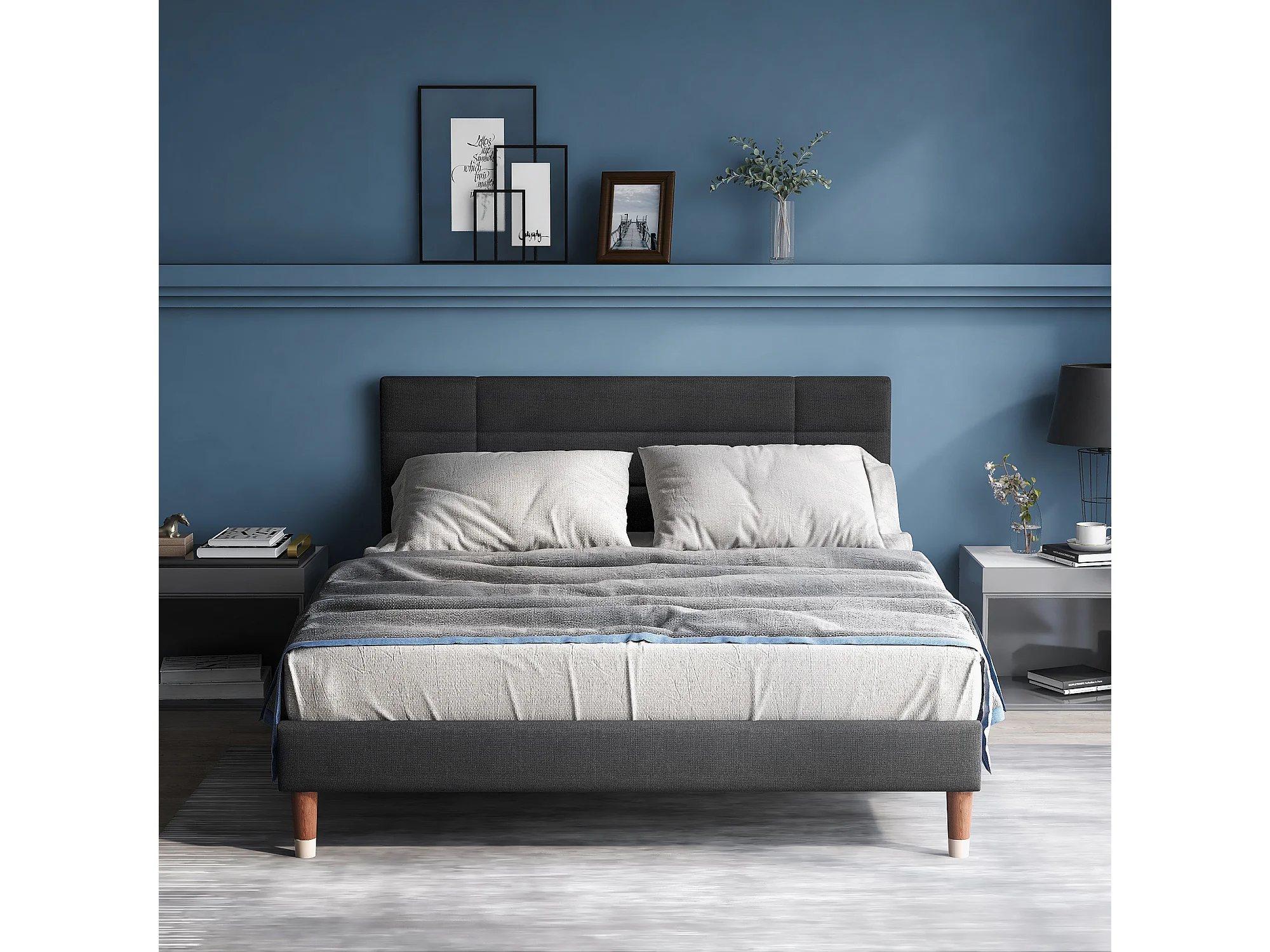 Lit double 141×209cm avec tête de lit cadre rembourré - Bois - Gris - (Avec matelas)