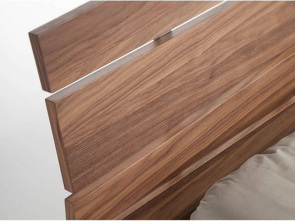 Lit double 150x200 bois noyer et verre trempé Ponza