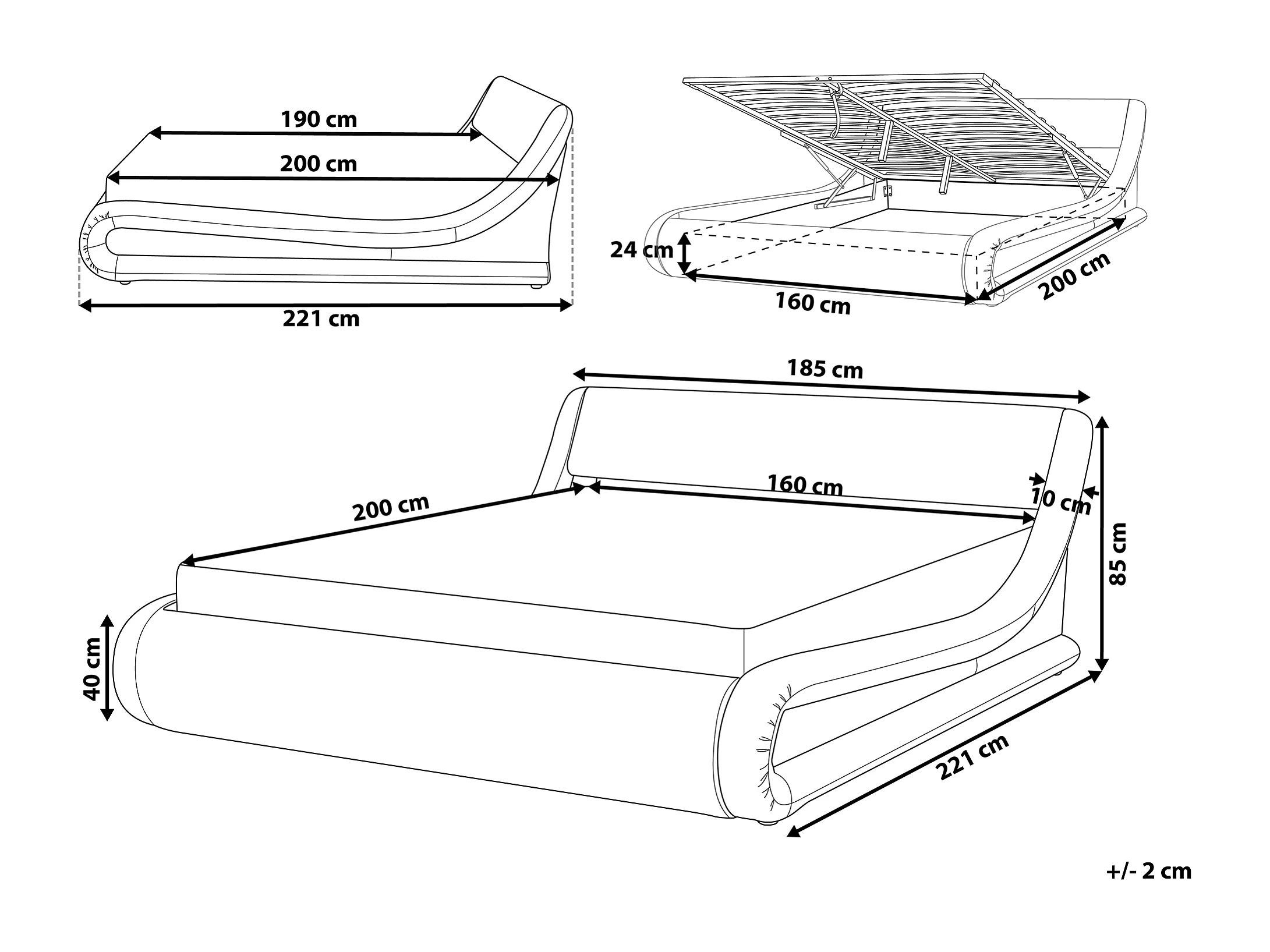 Lit ottoman Cuir PU AVIGNON 160 x 200 cm Blanc